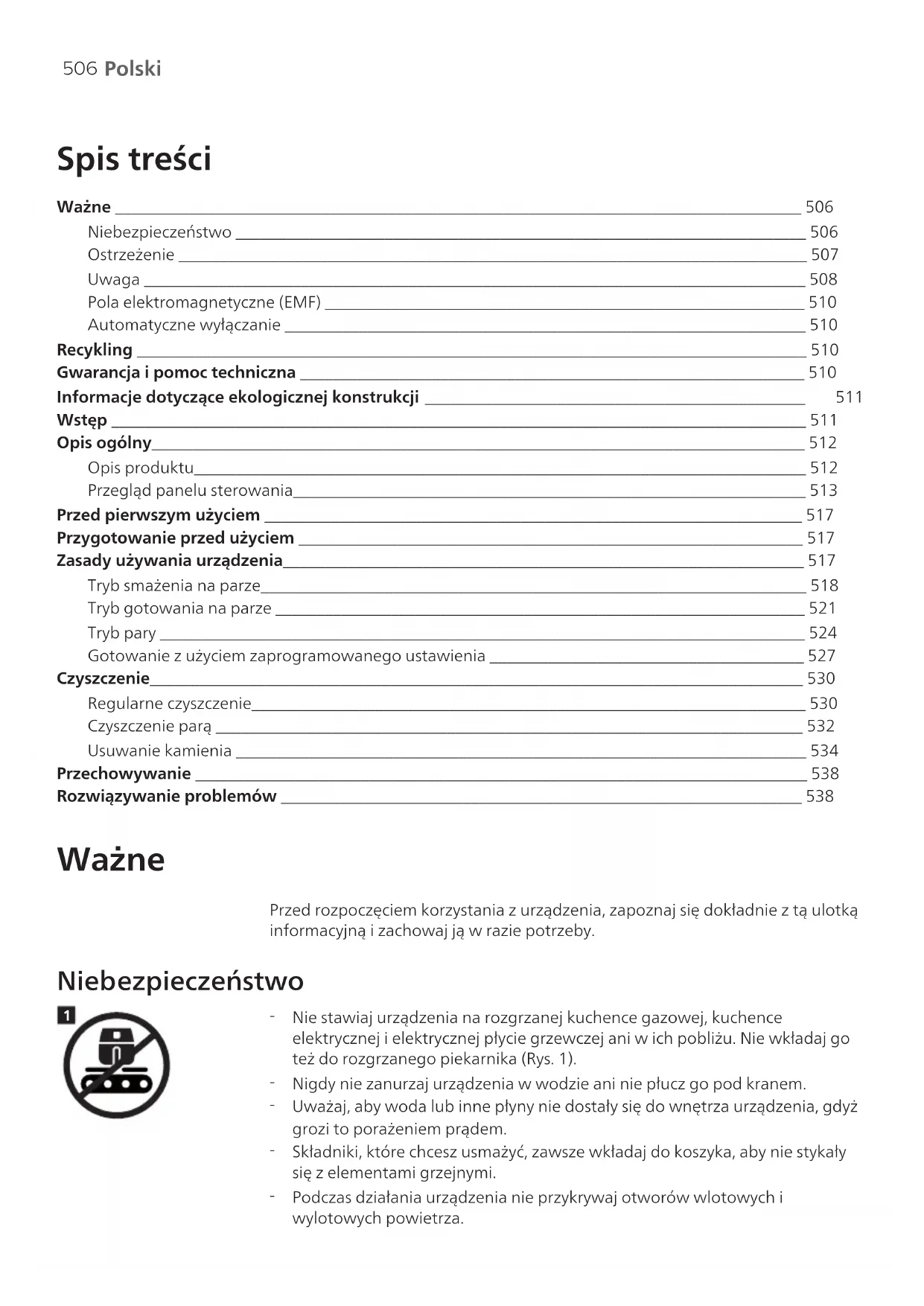 To urządzenie jest wyposażone w funkcję automatycznego wyłączania. Jeśli w ciągu 20 minut nie zostanie naciśnięty żaden przycisk, urządzenie wyłączy się automatycznie. Aby ręcznie wyłączyć urządzenie, naciśnij wyłącznik. Recykling Ten symbol oznacza, że produktów elektrycznych po okresie ich użytkowania, nie można wyrzucać wraz z innymi odpadami pochodzącymi z gospodarstw domowych. Użytkownik ma obowiązek oddać zużyty produkt do podmiotu prowadzącego zbieranie zużytego sprzętu elektrycznego i elektronicznego, tworzącego system zbierania takich odpadów - w tym do odpowiedniego sklepu, lokalnego punktu zbiórki lub jednostki gminnej. Zużyty sprzęt może mieć szkodliwy wpływ na środowisko i zdrowie ludzi z uwagi na potencjalną zawartość niebezpiecznych substancji, mieszanin oraz części składowych. Gospodarstwo domowe spełnia ważną rolę w przyczynianiu się do ponownego użycia i odzysku surowców wtórnych, w tym recyklingu zużytego sprzętu. Na tym etapie kształtuje się postawy, które wpływają na zachowanie wspólnego dobra jakim jest czyste środowisko naturalne. Gwarancja i pomoc techniczna Versuni udziela dwuletniej gwarancji na ten produkt po jego zakupie. Gwarancja ta nie obowiązuje, jeśli wada wynika z nieprawidłowego użytkowania lub niewłaściwej konserwacji. Nasza gwarancja nie ma wpływu na ustawowe prawa511 Polski użytkownika jako konsumenta. Aby uzyskać więcej informacji lub skorzystać z gwarancji, odwiedź naszą stronę internetową www.home.id/warranty. Informacje dotyczące ekologicznej konstrukcji Informacje dotyczące ekologicznej konstrukcji dla identyfikatora(–ów) modelu: NA540, NA541, NA543, NA547 Opis Symbol Wartość Jednostka Pobór mocy w trybie wyłączenia Wył. 0,3 W Pobór mocy w trybie czuwania CZUW. / W Okres przed automatycznym przełączeniem w tryb czuwania CZUW. 20 min Norma dla pomiaru wartości eksploatacyjnej EN 50564:2011 Dodatkowych informacji udzielają DAP B.V. Tussendiepen 4a,9206AD Drachten, Holandia Urządzenie spełnia wymagania dotyczące ekoprojektu określone w ROZPORZĄDZENIU KOMISJI (UE) 2023/826. Wstęp Gratulujemy zakupu i witamy wśród klientów firmy Philips! Aby w pełni skorzystać ze świadczonej przez nas obsługi, należy zarejestrować zakupiony produkt na stronie www.home.id.512 Polski Opis ogólny Opis produktu