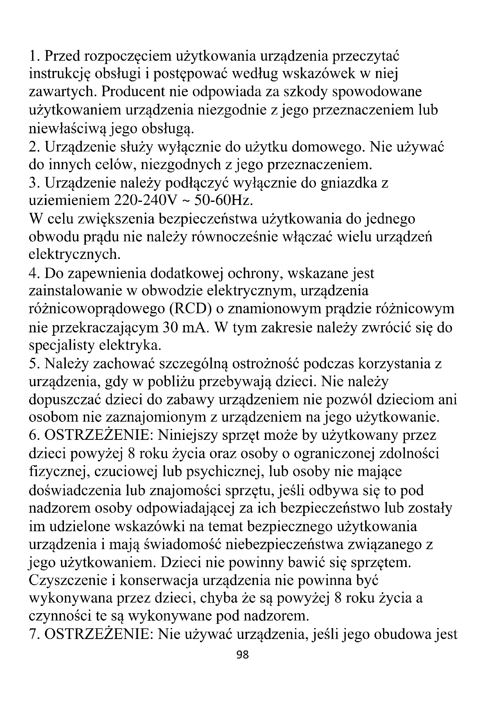 dzieci powyżej 8 roku życia oraz osoby o ograniczonej zdolności fizycznej, czuciowej lub psychicznej, lub osoby nie mające doświadczenia lub znajomości sprzętu, jeśli odbywa się to pod nadzorem osoby odpowiadającej za ich bezpieczeństwo lub zostały im udzielone wskazówki na temat bezpiecznego użytkowania urządzenia i mają świadomość niebezpieczeństwa związanego z jego użytkowaniem. Dzieci nie powinny bawić się sprzętem. Czyszczenie i konserwacja urządzenia nie powinna być wykonywana przez dzieci, chyba że są powyżej 8 roku życia a czynności te są wykonywane pod nadzorem.