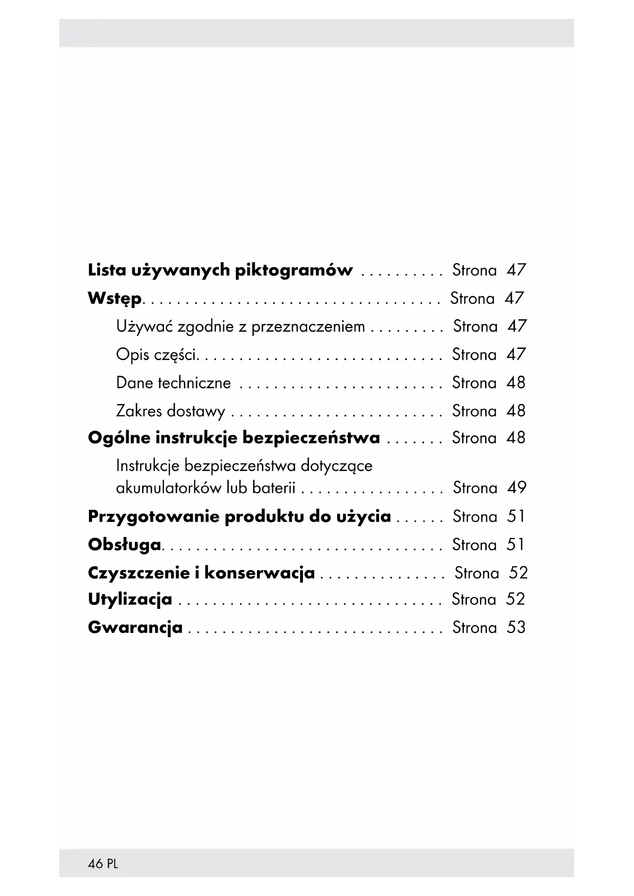 w produkcie. Czyszczenie i konserwacja Obudowę produktu należy czyścić miękką, suchą ściereczką. Wyjąć baterię, jeżeli produkt nie jest używany. Utylizacja Opakowanie wykonane jest z materiałów przyjaznych dla środowiska, które można przekazać do utylizacji w lokalnym punkcie przetwarzania surowców wtórnych. Przy segregowaniu odpadów prosimy zwrócić uwagę na oznakowanie materiałów opakowaniowych, oznaczone są one skrótami (a) i numerami (b) o następującym znaczeniu: 1–7: Tworzywa sztuczne / 20–22: Papier i tektura / 80–98: Materiały kompozytowe. Produkt i materiał opakowania nadają się do ponownego przetworzenia, należy je zutylizować osobno w celu lepszego przetworzenia odpadów. Logo Triman jest ważne tylko dla Francji. Informacji na temat możliwości utylizacji wyeksploatowanego produktu udziela urząd gminy lub miasta. Z uwagi na ochronę środowiska nie wyrzucać urządzenia po zakończeniu eksploatacji do odpadów domowych, lecz prawidłowo zutylizować. Informacji o punktach zbiorczych i ich godzinach otwarcia udziela odpowiedni urząd.53PL Uszkodzone lub zużyte baterie / akumulatory muszą być poddane recyklingowi zgodnie z dyrektywą 2006/66/WE i jej zmianami. Oddać baterie / akumulatory i / lub produkt w dostępnych punktach zbiórki. Niewłaściwa utylizacja baterii / akumulatorów stwarza zagrożenie dla środowiska naturalnego! Baterii / akumulatorów nie należy wyrzucać razem z odpadami domowymi. Mogą one zawierać szkodliwe metale ciężkie i należy je traktować jak odpady specjalne. Symbole chemiczne metali ciężkich są następujące: Cd = kadm, Hg = rtęć, Pb = ołów. Dlatego też zużyte baterie / akumulatory należy przekazywać do komunalnych punktów gromadzenia odpadów niebezpiecznych. Gwarancja Produkt wyprodukowano według wysokich standardów jakości i poddano skrupulatnej kontroli przed wysyłką. W przypadku wad produktu nabywcy przysługują ustawowe prawa. Gwarancja nie ogranicza ustawowych praw nabywcy produktu. Produkt objęte jest 3 gwarancją, licząc od daty zakupu. Gwarancja wygasa w razie zawinionego przez użytkownika uszkodzenia produktu, niewłaściwego użycia lub konserwacji. W przypadku wystąpienia w ciągu 3 lat od daty zakupu wad materiałowych lub fabrycznych, dokonujemy – według własnej oceny – bezpłatnej naprawy lub wymiany produktu. Świadczenie gwarancyjne obejmuje wady materiałowe i fabryczne. Gwarancja nie obejmuje części produktu ulegających normalnemu zużyciu, uznawanych za części zużywalne (np. baterie) oraz uszkodzeń części łamliwych, np. przełączników, akumulatorów lub wykonanych ze szkła.54 PL Zgodnie z Kodeksem Cywilnym art. 581 §1 wraz z wymianą urządzenia lub ważnej części czas gwarancji rozpoczyna się na nowo. Sposób postępowania w przypadku naprawy gwarancyjnej Aby zapewnić szybkie rozpatrzenie Państwa wniosku, prosimy stosować się do następujących wskazówek: Przed skontaktowaniem się z działem serwisowym należy przygotować paragon i numer artykułu (np. IAN 123456_7890) jako dowód zakupu. Numery artykułów można znaleźć na tabliczce znamionowe, na grawerunku, na stronie tytułowej jego instrukcji (na dole po lewej stronie) lub jako naklejkę na stronie odwrotnej lub spodniej. W razie wystąpienia błędów w działaniu lub innych wad, należy skontaktować się najpierw z wymienionym poniżej działem serwisowym telefonicznie lub pocztą elektroniczną. Produkt uznany za uszkodzony można następnie z dołączeniem dowodu zakupu (paragonu) i podaniem, na czym polega wada i kiedy wystąpiła, przesłać bezpłatnie na podany Państwu adres serwisu. Serwis Serwis Polska Tel.: 22 397 4996 E-Mail: owim@lidl.pl55CZ Seznam použitých piktogramů........... Strana 56 Úvod.................................... Strana 56 Použití v souladu s určením ................ Strana 56 Popis dílů .............................. Strana 56 Technické údaje . . . . . . . . . . . . . . . . . . . . . . . . . Strana 57 Rozsah dodávky......................... Strana 57 Všeobecné bezpečnostní pokyny......... Strana 57 Bezpečnostní pokyny pro baterie/ dobíjecí baterie ......................... Strana 58 Příprava výrobku k použití .............. Strana 60 Obsluha................................. Strana 60 Čistění a péče............................ Strana 61 Zlikvidování............................. Strana 61 Záruka.................................. Strana 6256 CZ Seznam použitých piktogramů Stejnosměrný proud