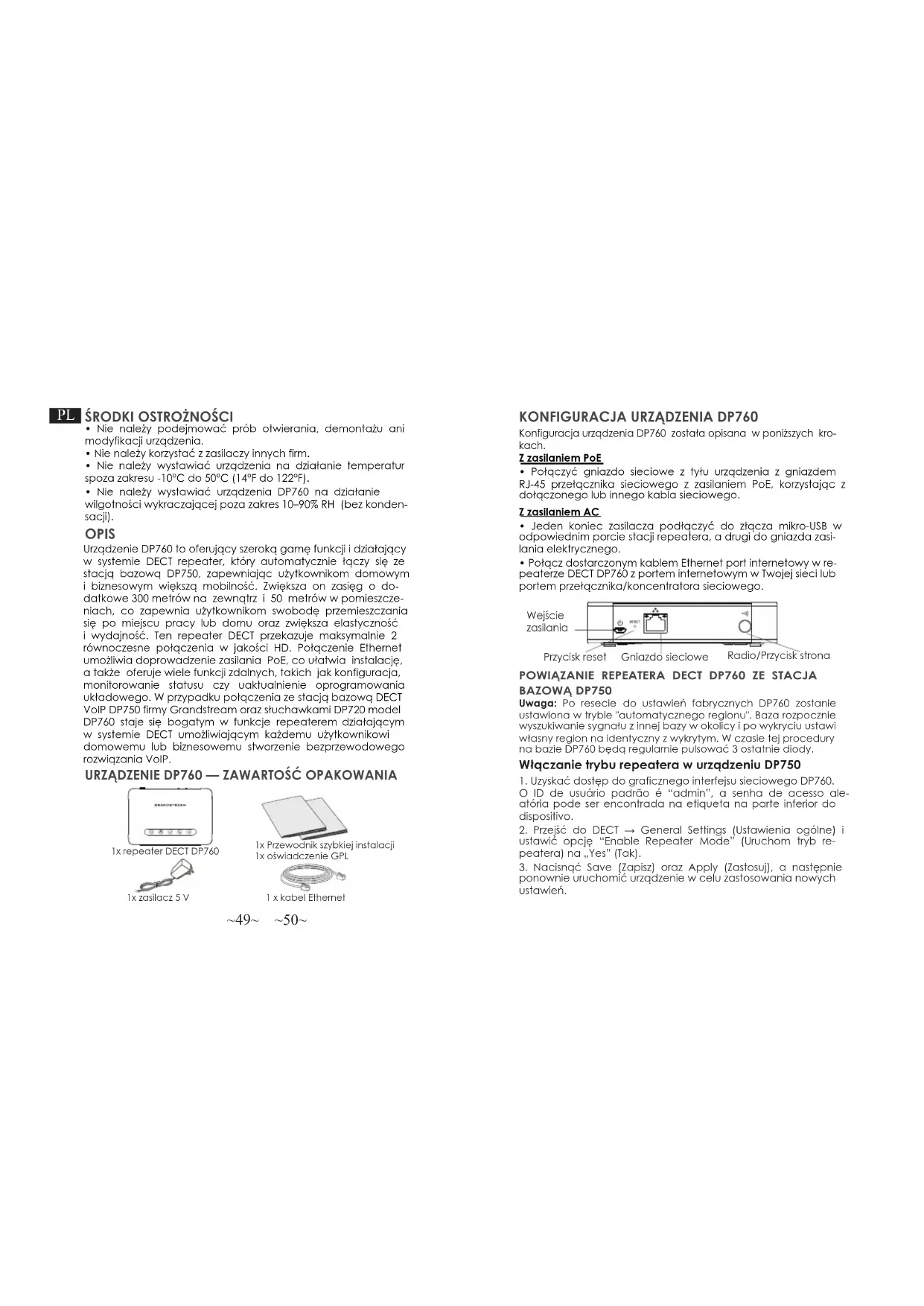 WejściezasilaniaPrzycisk resetRadio/Przycisk stronaKonfiguracja urządzenia DP760 została opisana w poniższych kro-kach.Z zasilaniem PoE