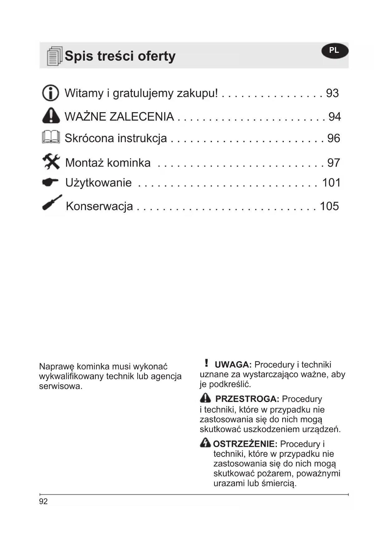 techniczne lub uwagi dotyczące obsługi kominka, lub też chcecie skontaktować się z działem obsługi klienta, informacje kontaktowe zostały podane na karcie gwarancyjnej.