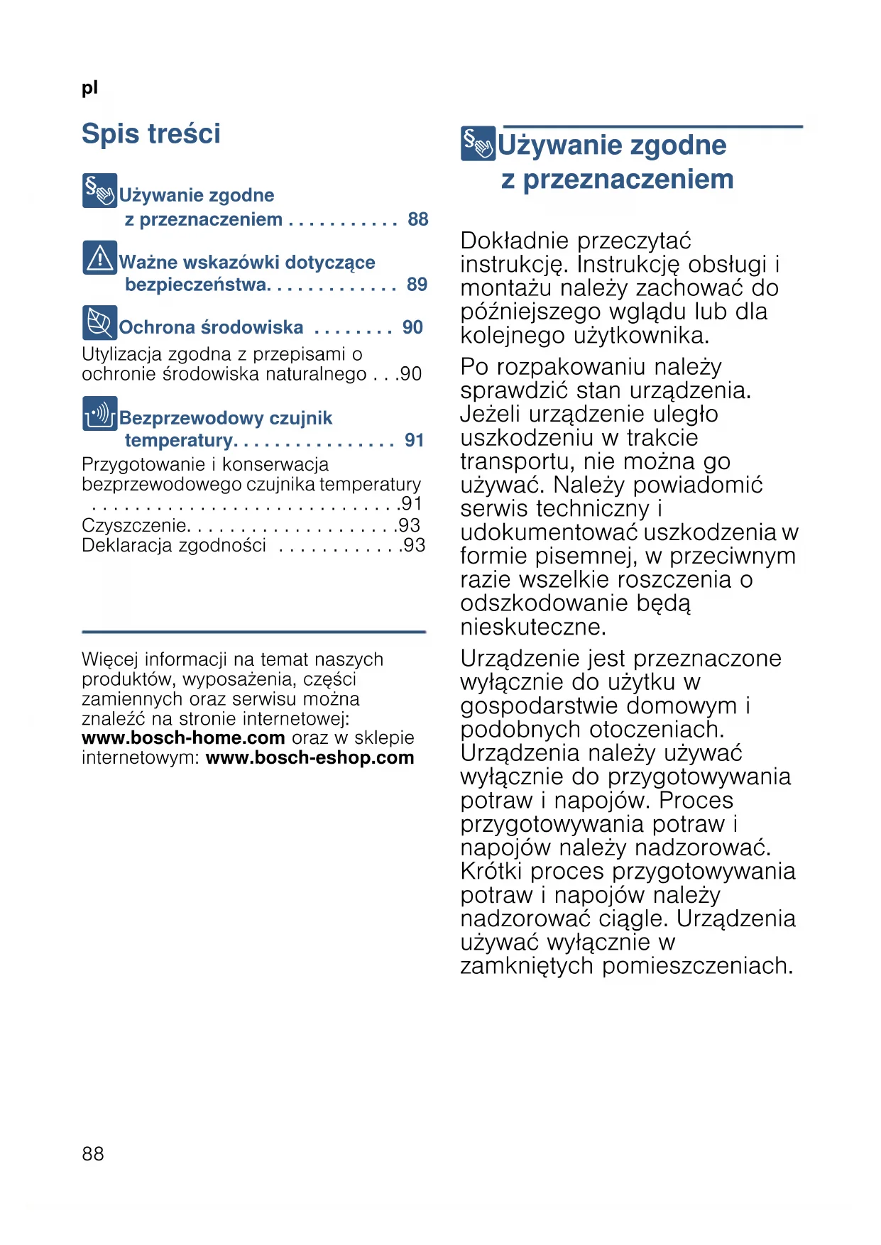 - Spis treści plInstrukcja obsł ugi 8 Używanie zgodne z przeznaczeniem p. 88