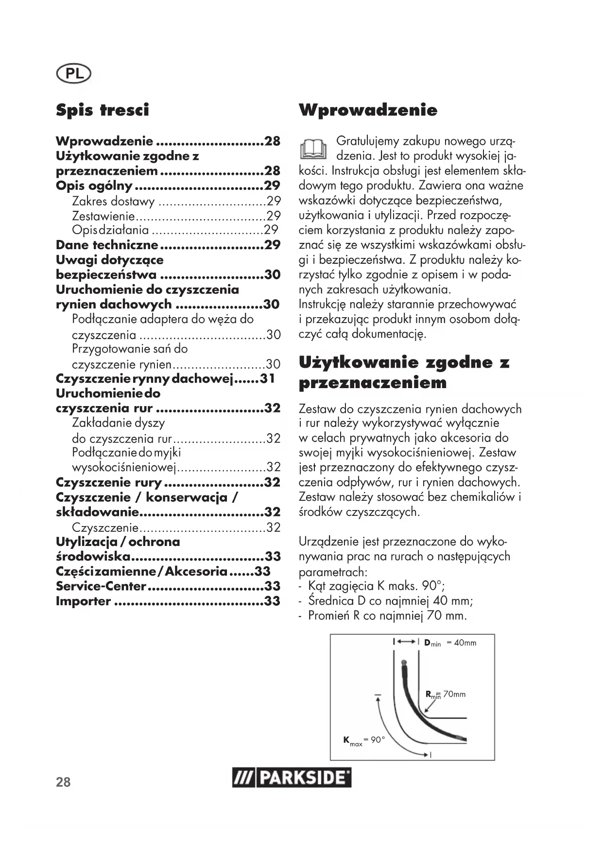 Zestaw przyznaczony do myjek wysokocisniiewych Parkside serii PHD 100*, PHD 110, PHD 135, PHD 150 i PHD 170 oraz do myjek wysokocisniiewych Parkside-Performance PHDP 180.
