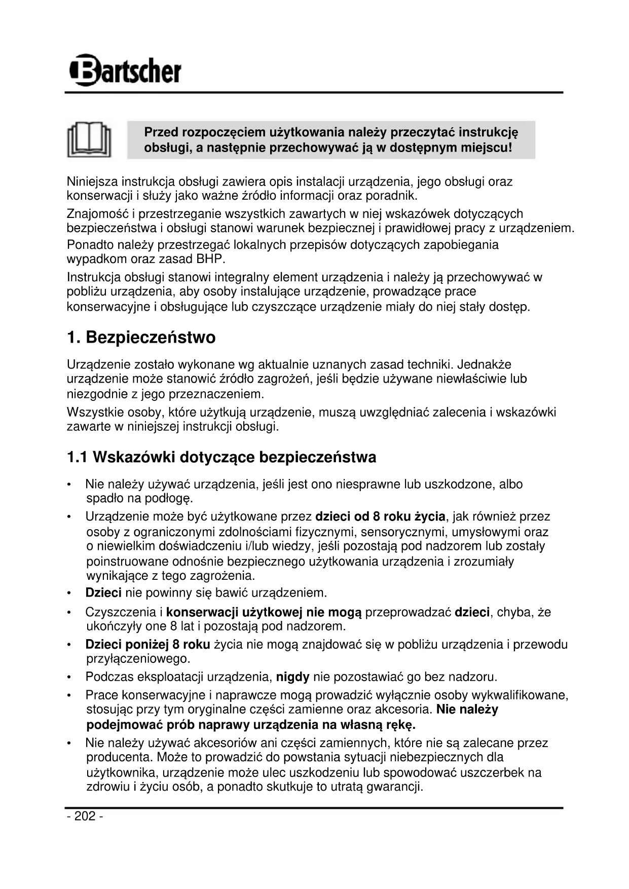 Bartscher GmbH Franz-Kleine-Str. 28 D-33154 Salzkotten Tel.: +49 (0) 5258 971-0 Germany Fax: +49 (0) 5258 971-120- 201 - POLSKI Tłumaczenie oryginalnej instrukcji obsługi