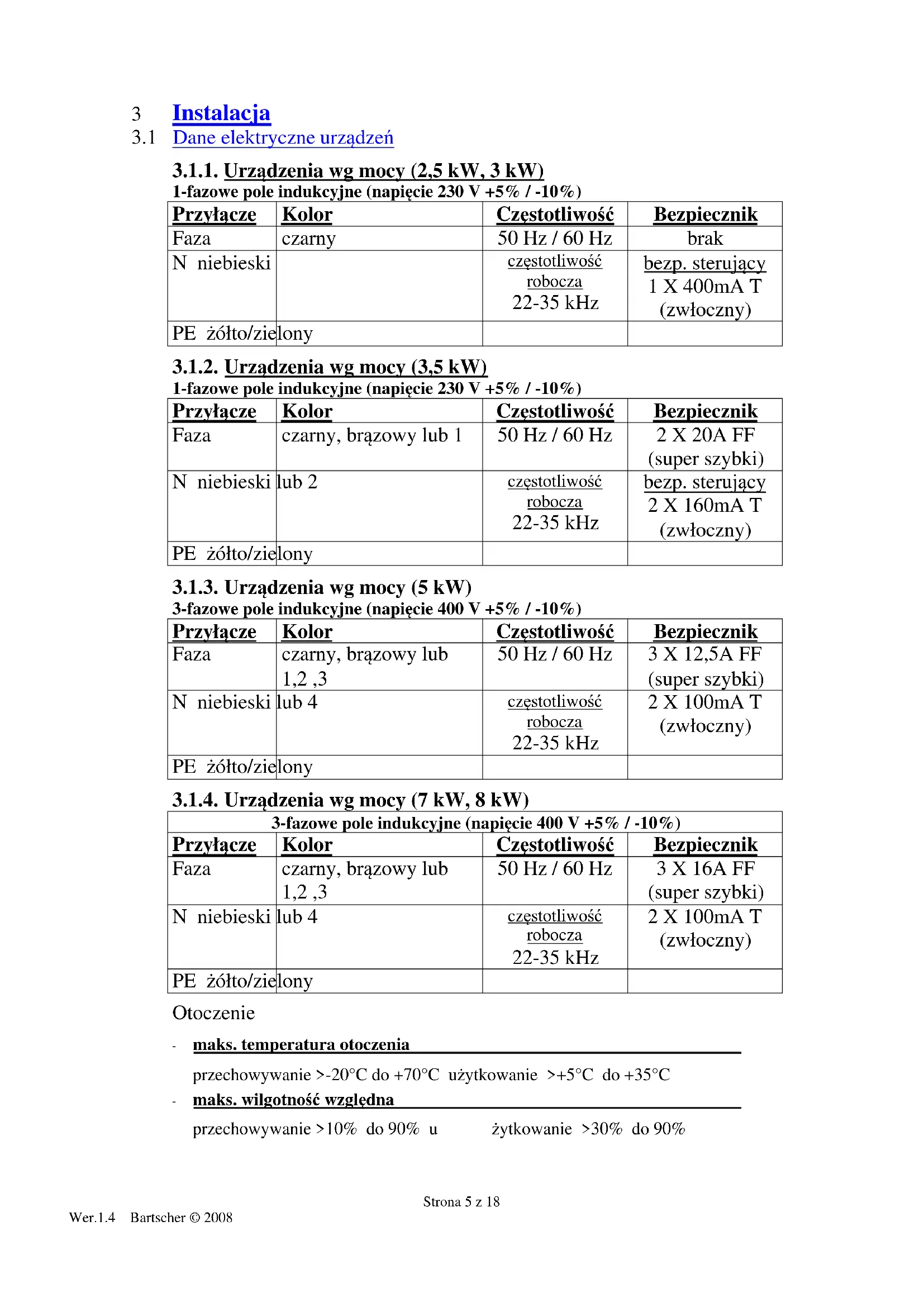 3.1 Dane elektryczne urządzeń 5