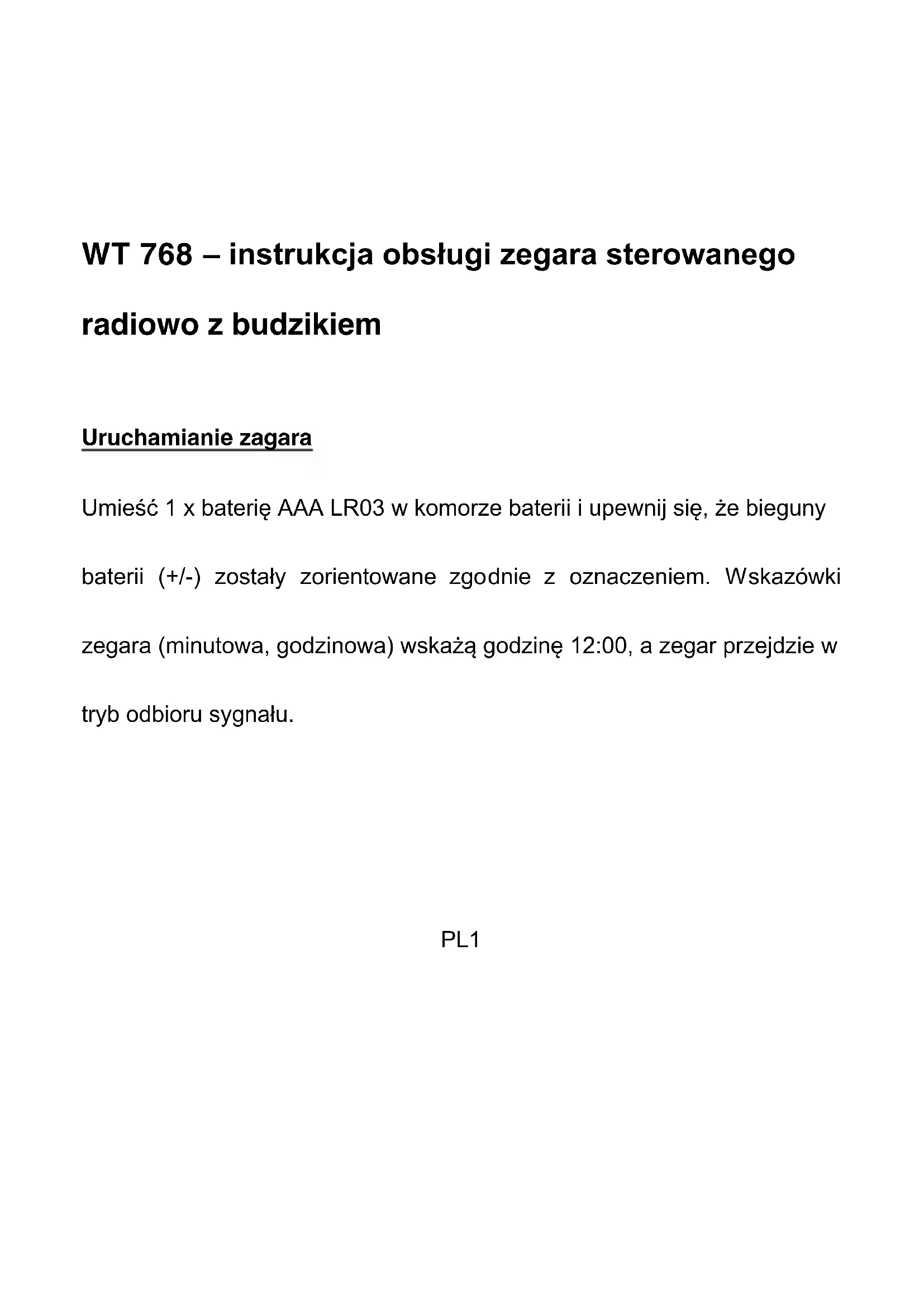 WT 768 - Radio budzik TECHNOLINE - Bezpłatna instrukcja obsługi