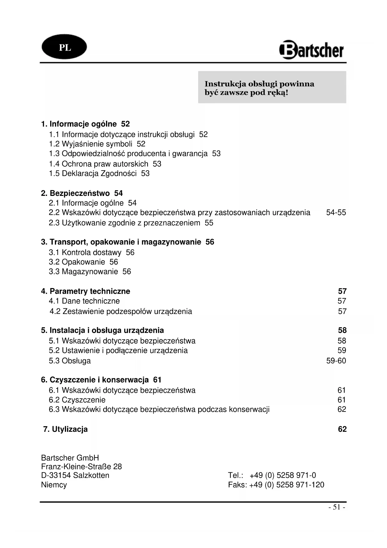 INSTRUKCJA OBSŁUGI 135100 BARTSCHER