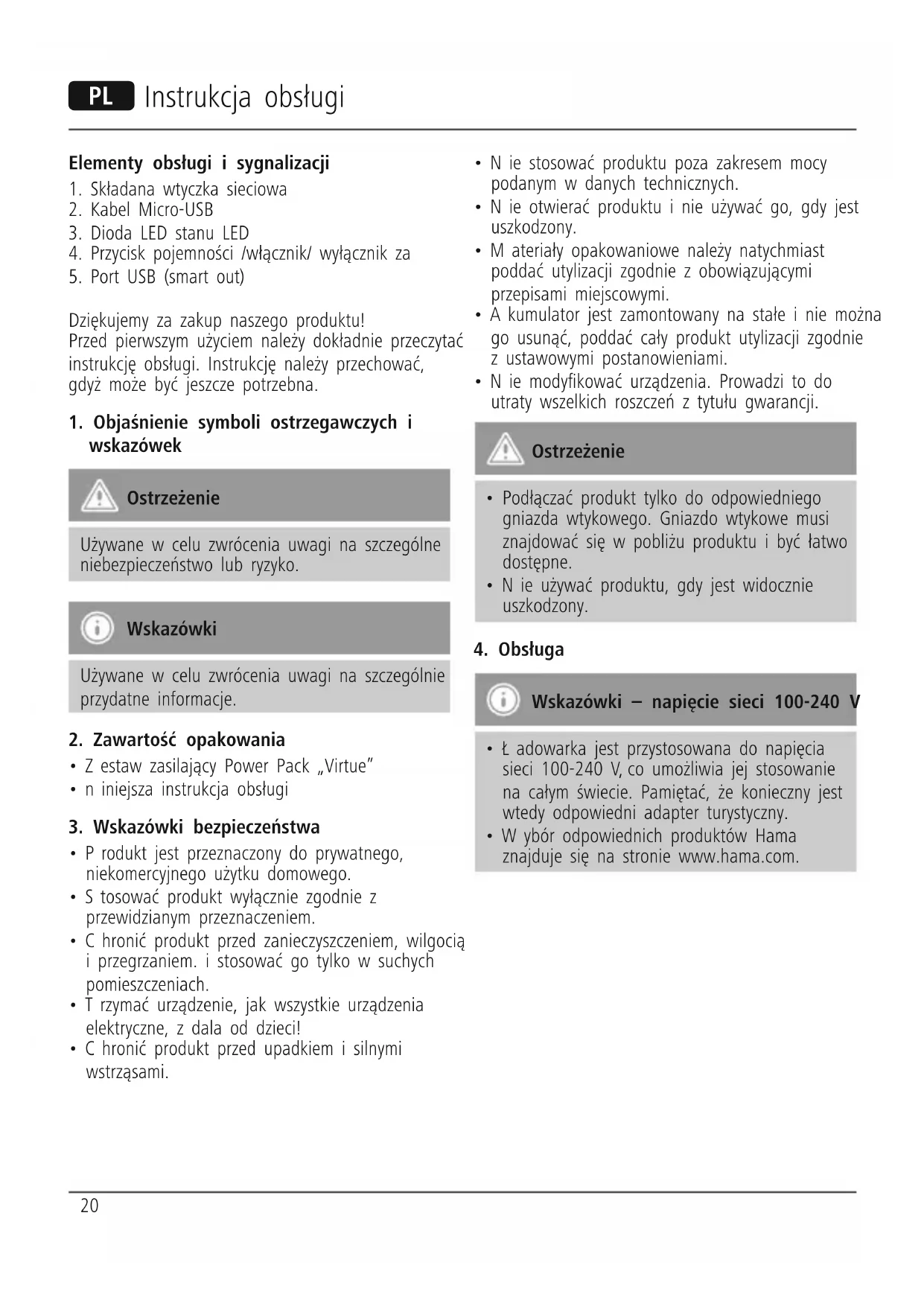 Virtue 00173857 - Powerbank HAMA - Bezpłatna instrukcja obsługi