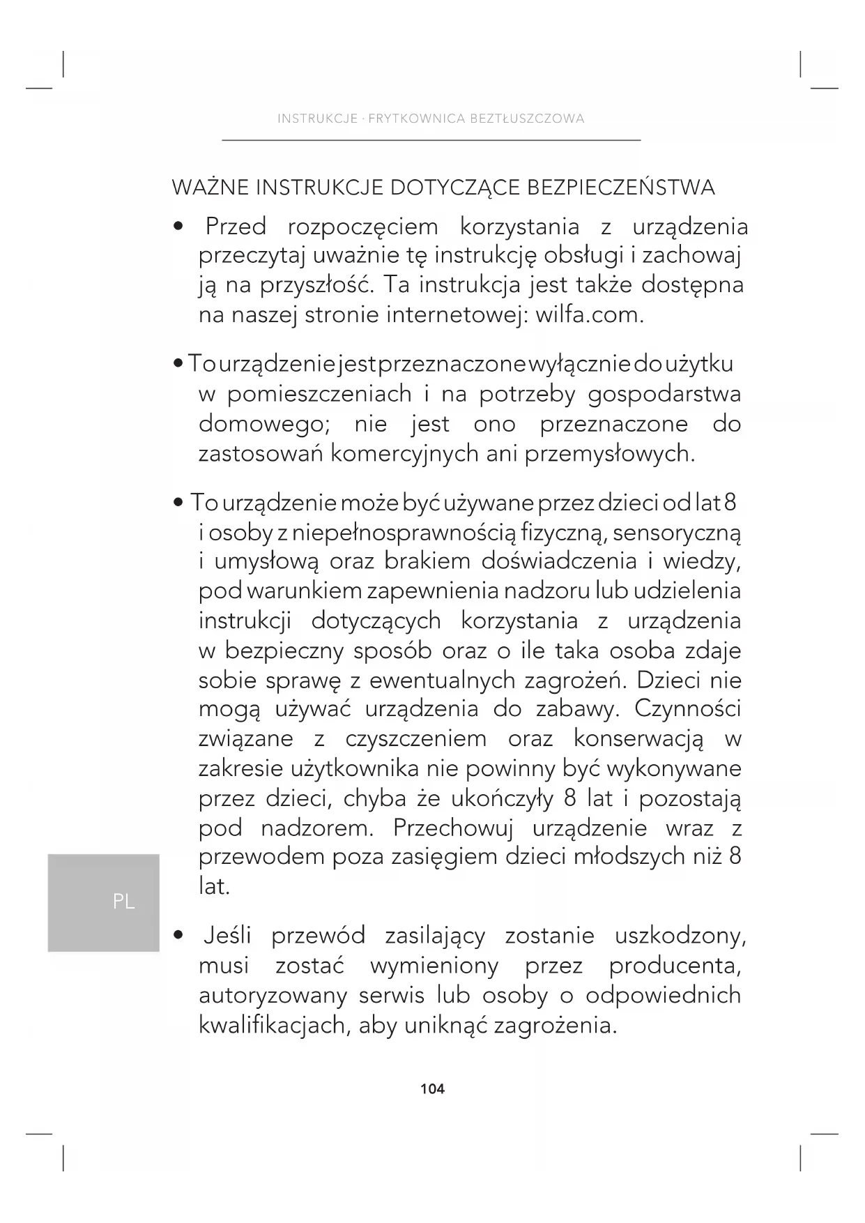 - Przed rozpoczęciem korzystania z urządzenia przeczytaj uważnie tę instrukcję obsługi i zachowaj ją na przyszłość. Ta instrukcja jest także dostępna na naszej stronie internetowej: wilfa.com.
