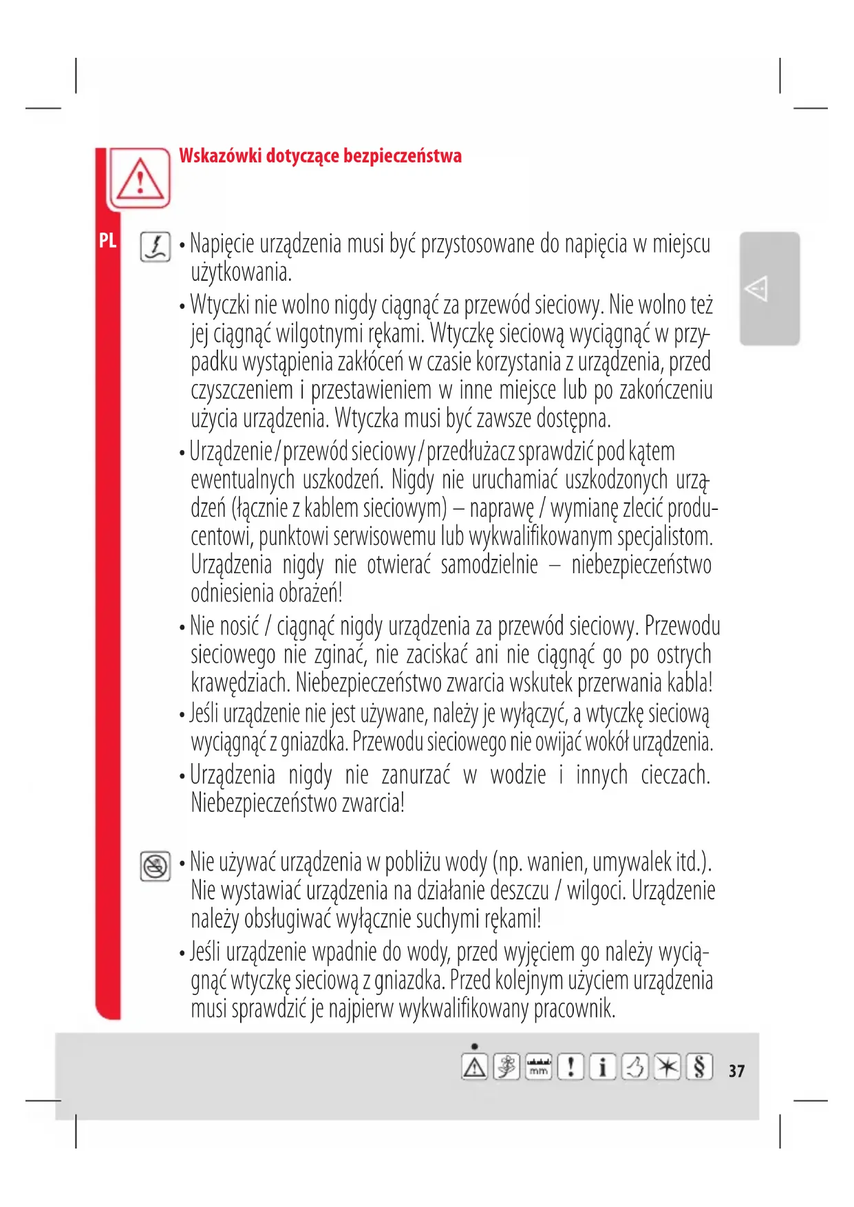 - Jeśli urządzenie wpadnie do wody, przed wyjęciem go należy wycią- gnąć wtyczkę sieciową z gniazdka. Przed kolejnym użyciem urządzenia musi sprawdzić je najpierw wykwalifikowany pracownik.38