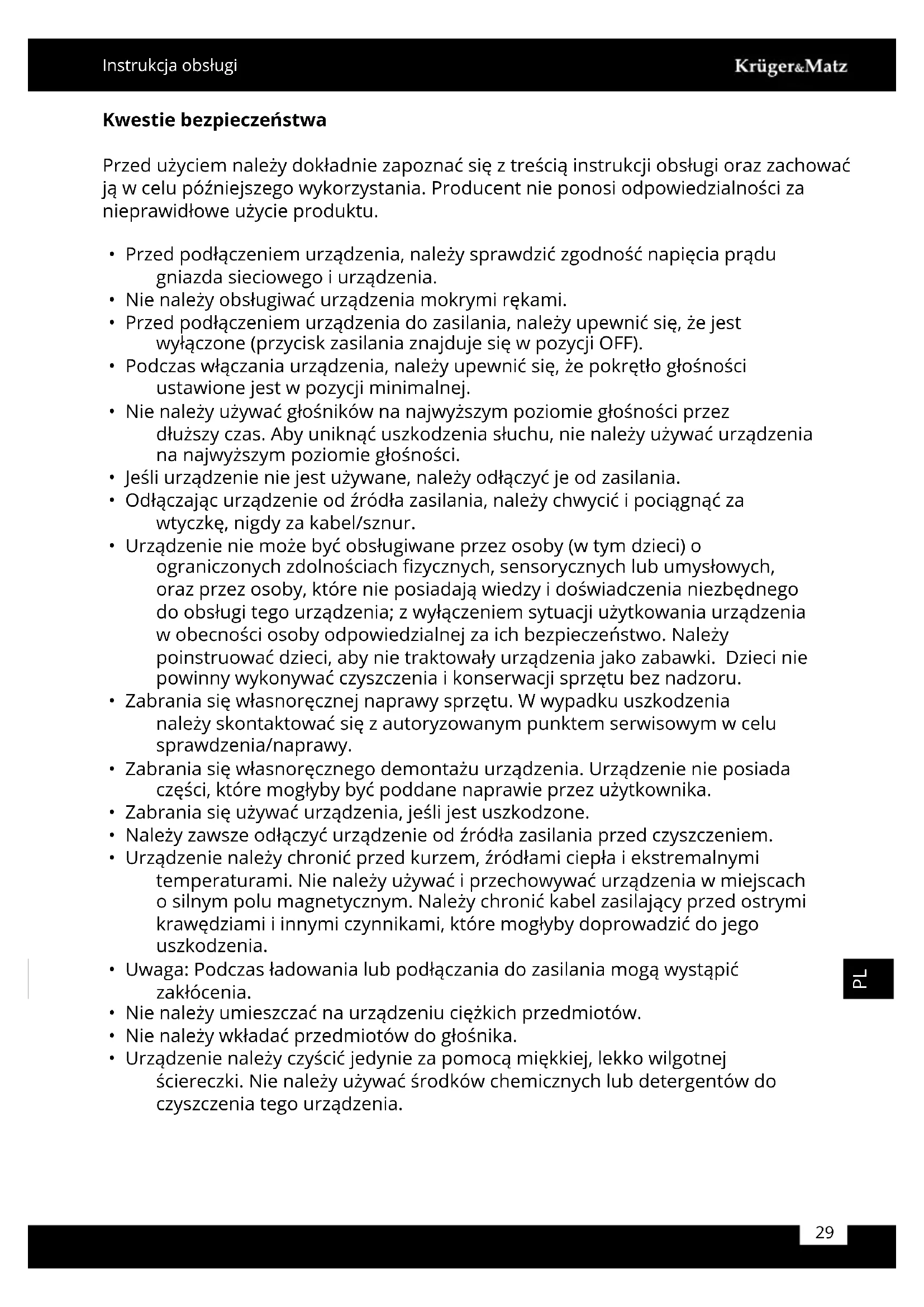 INSTRUKCJA OBSŁUGI KM0530 Krüger&Matz