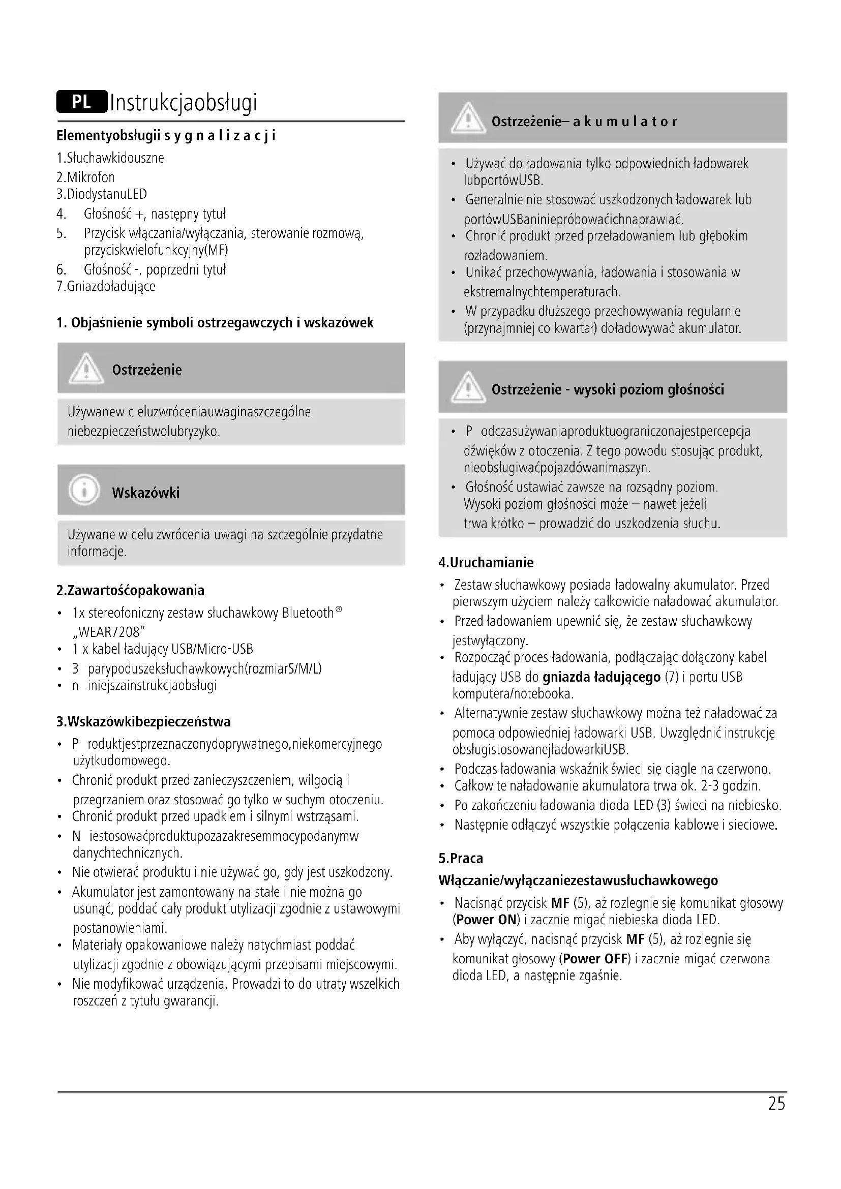 - Wprzypadku dłuższego przechowywania regularnie (przynajmniej co kwartał)doładowywać akumulator. Ostrzeżenie -wysoki poziom głośności