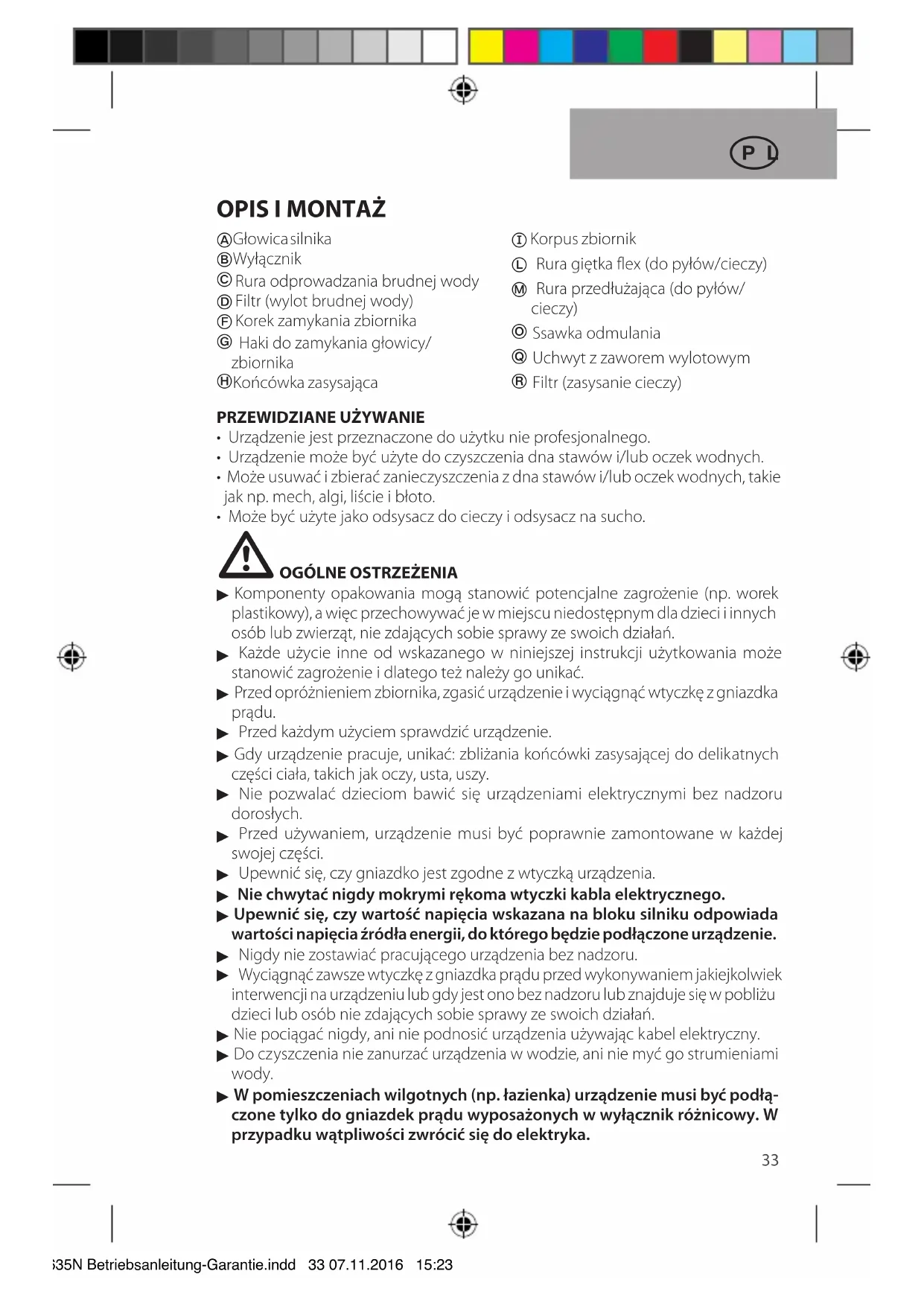 - Urzadzenie möglich być uzyte do czyszczenia dna stawów i/lub oczek wodnych.