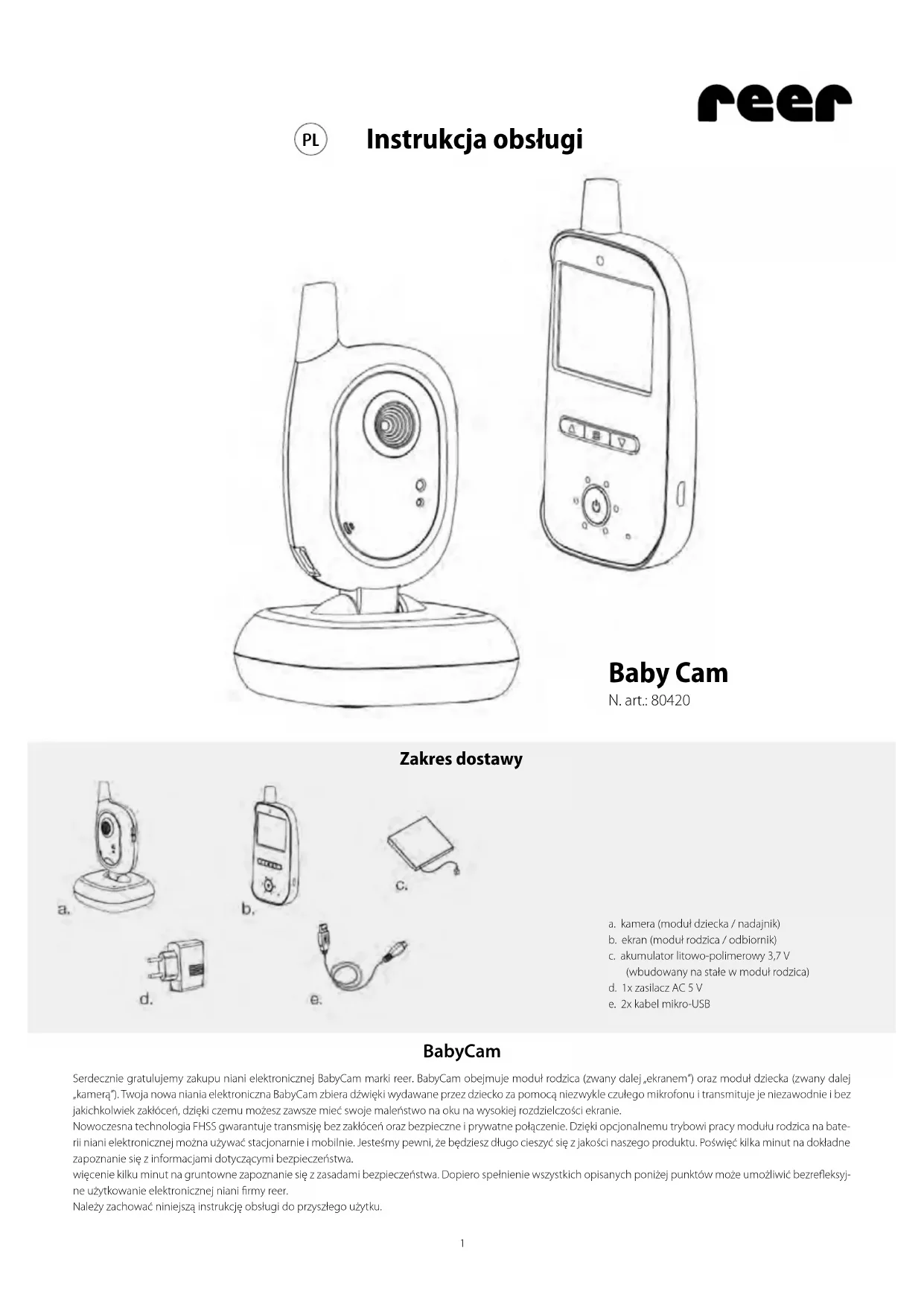 INSTRUKCJA OBSŁUGI BabyCam 80420 Reer