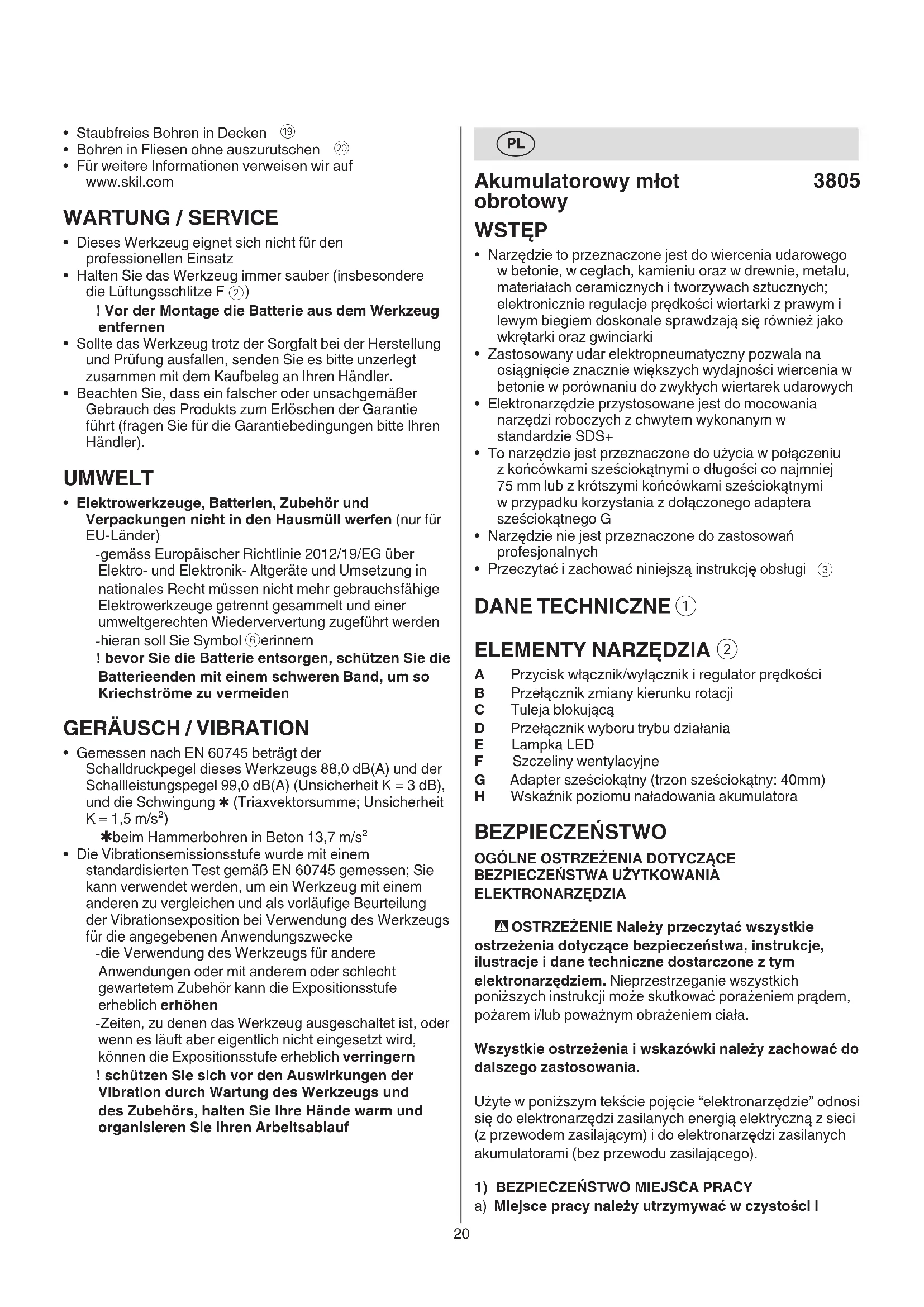 3805 CA - Wiertarka SKIL - Bezpłatna instrukcja obsługi