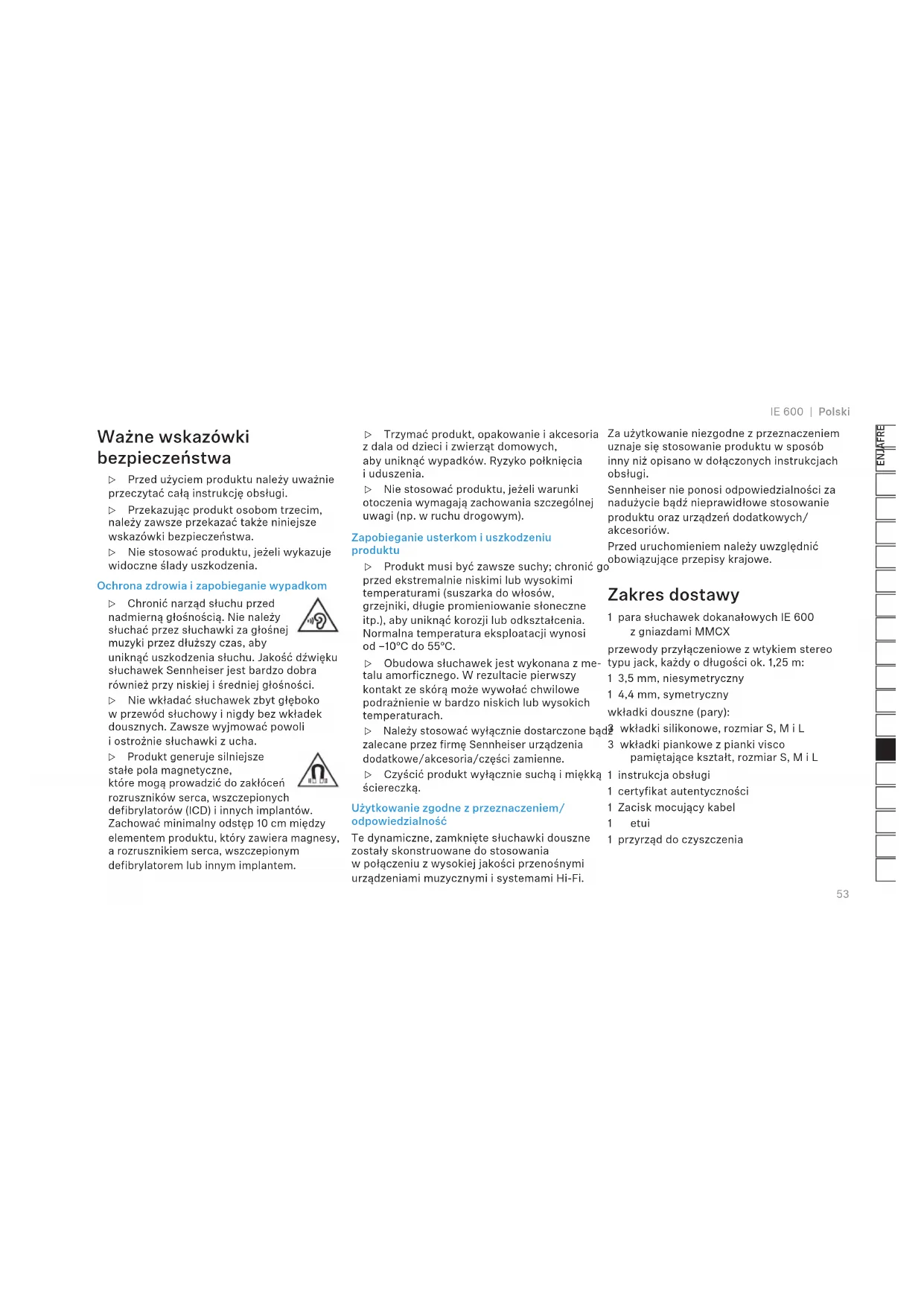INSTRUKCJA OBSŁUGI IE 600 SENNHEISER