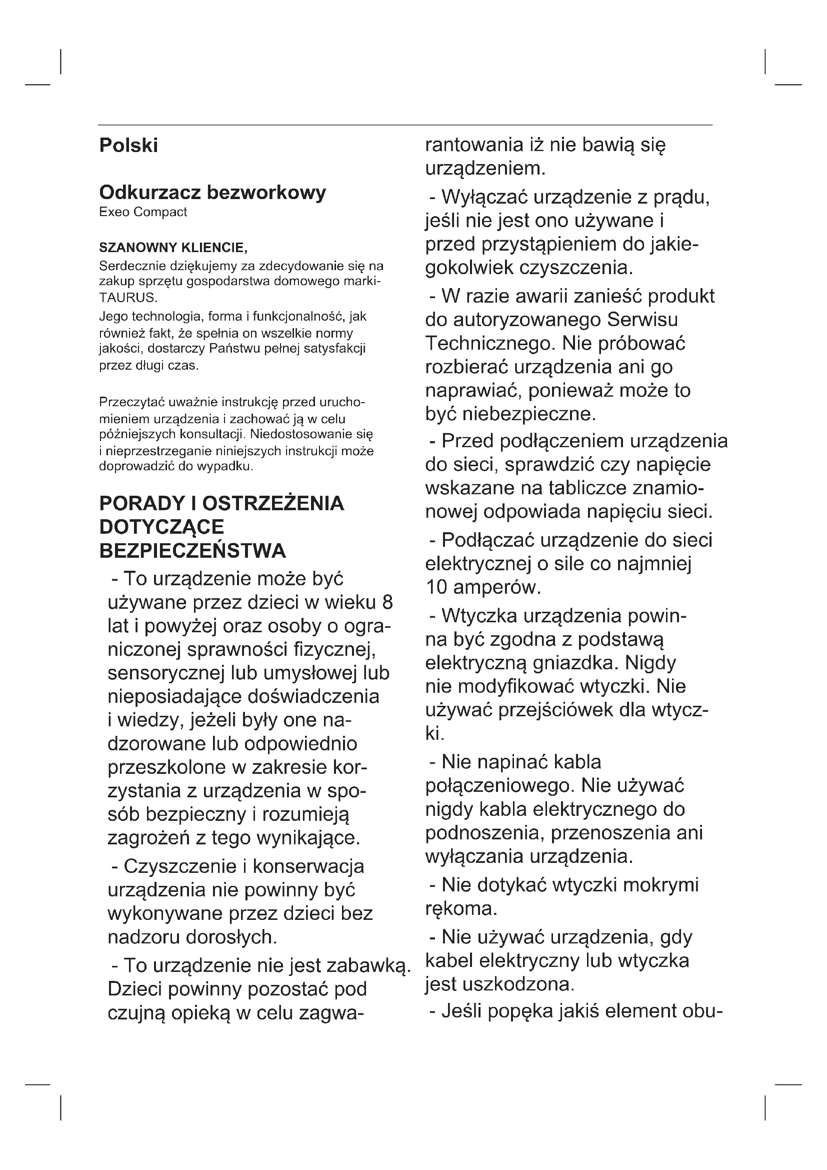 Exeo Compact - Odkurzacz TAURUS - Bezpłatna instrukcja obsługi