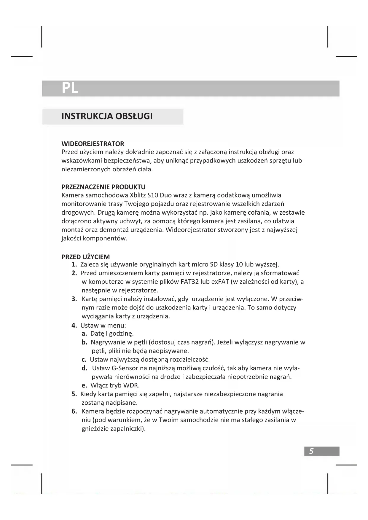 S10 Duo - Kamera samochodowa Xblitz - Bezpłatna instrukcja obsługi