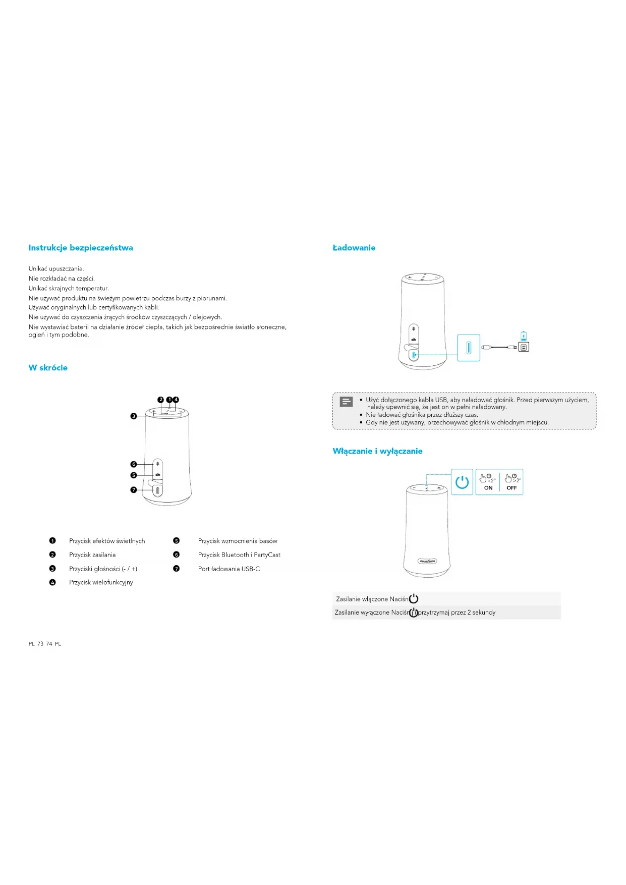 <2” Soundcore Flare 2 Soundcore Flare 2Soundcore Flare 2 Soundcore Flare 2FLARE 2 FLARE 2 Naciśnij Wejdź w tryb parowania Bluetooth Migająca niebieska dioda Parowanie Bluetooth Stale świecąca niebieska dioda Połączono za pomocą Bluetooth