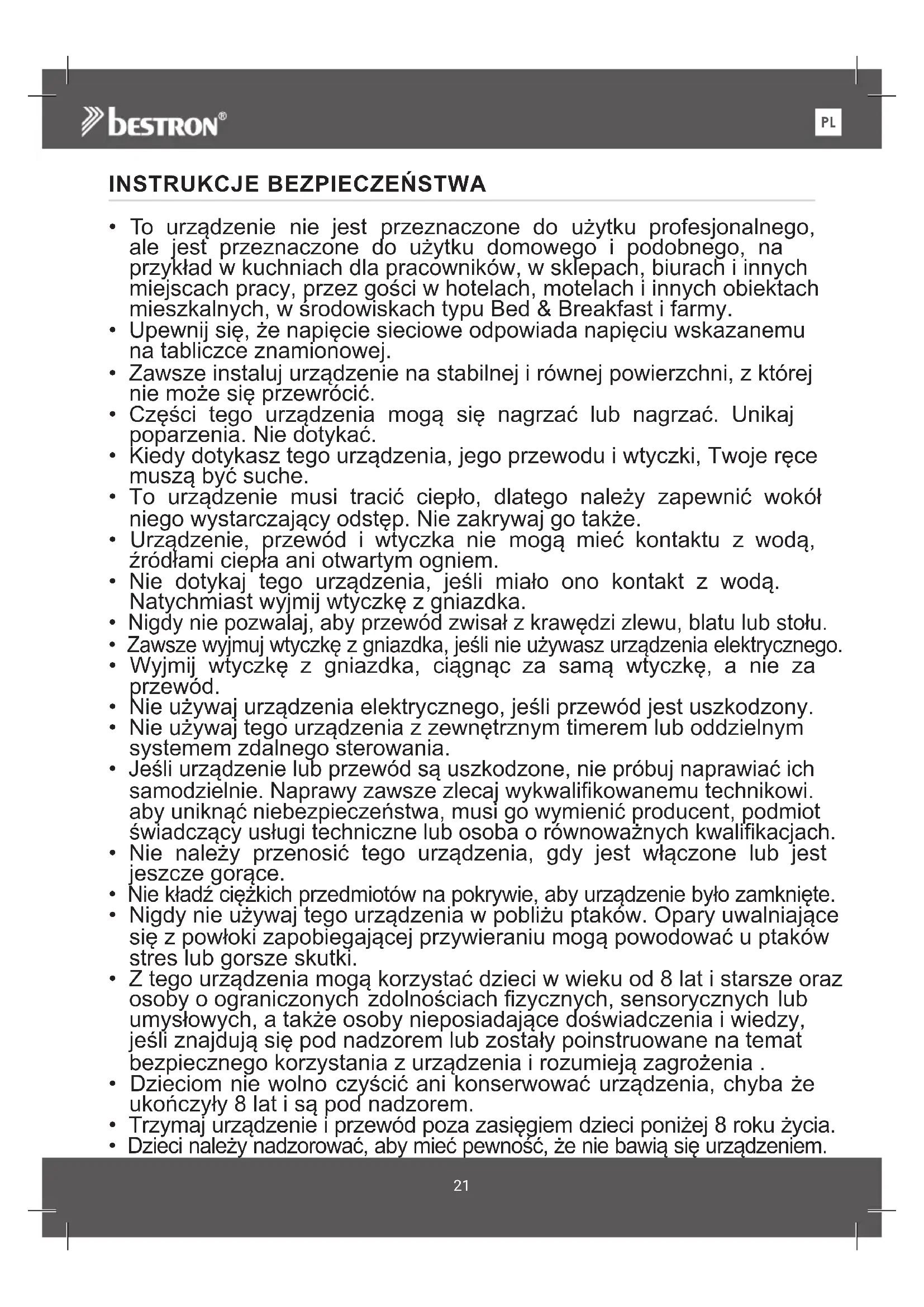 - Dzieci należy nadzorować, aby mieć pewność, że nie bawią się urządzeniem.PL