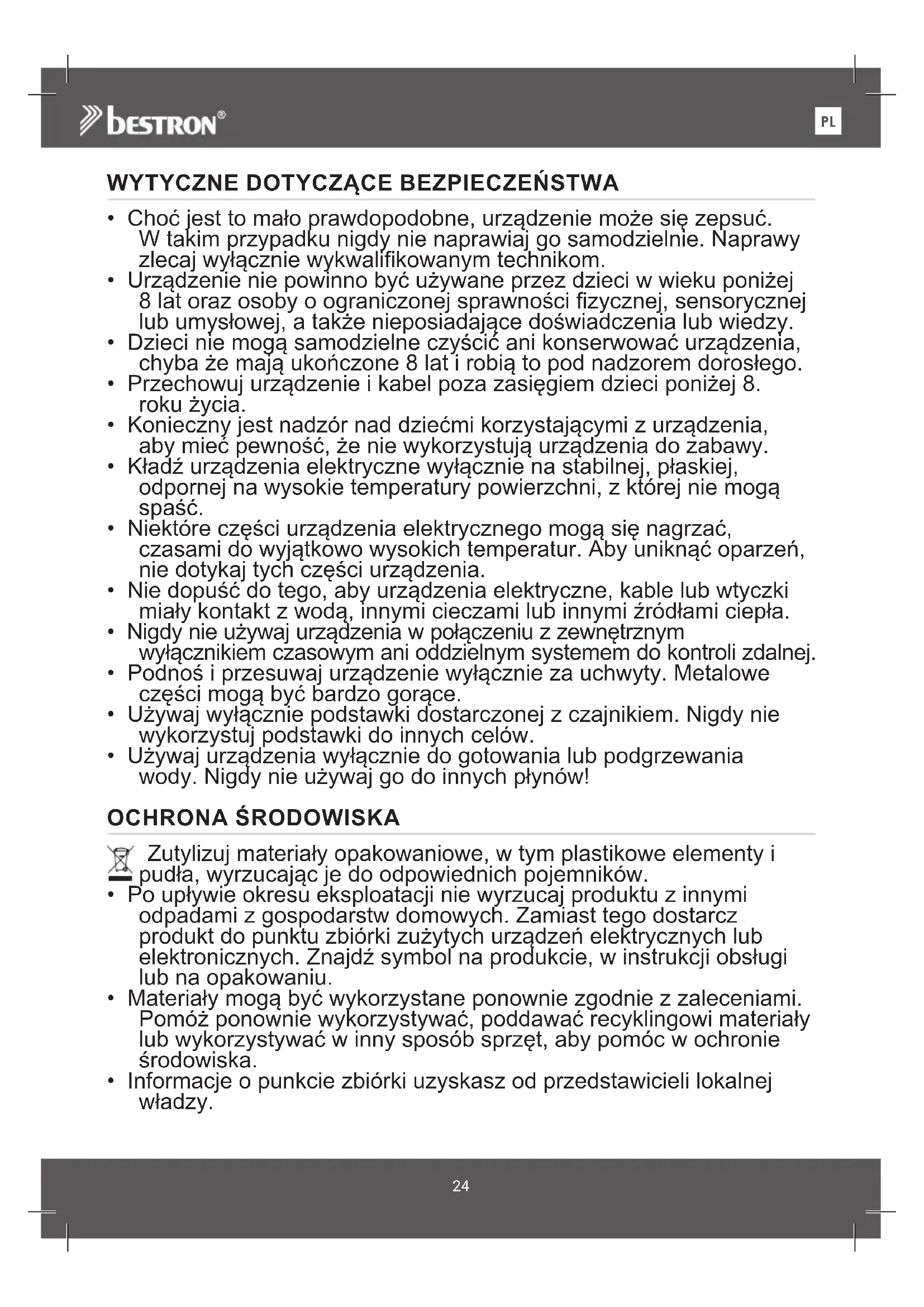 Jesli wystapi nieoczekiwany problem, odwiedź witrynę www.bestron.com/service w celu uzyskania pomocy.