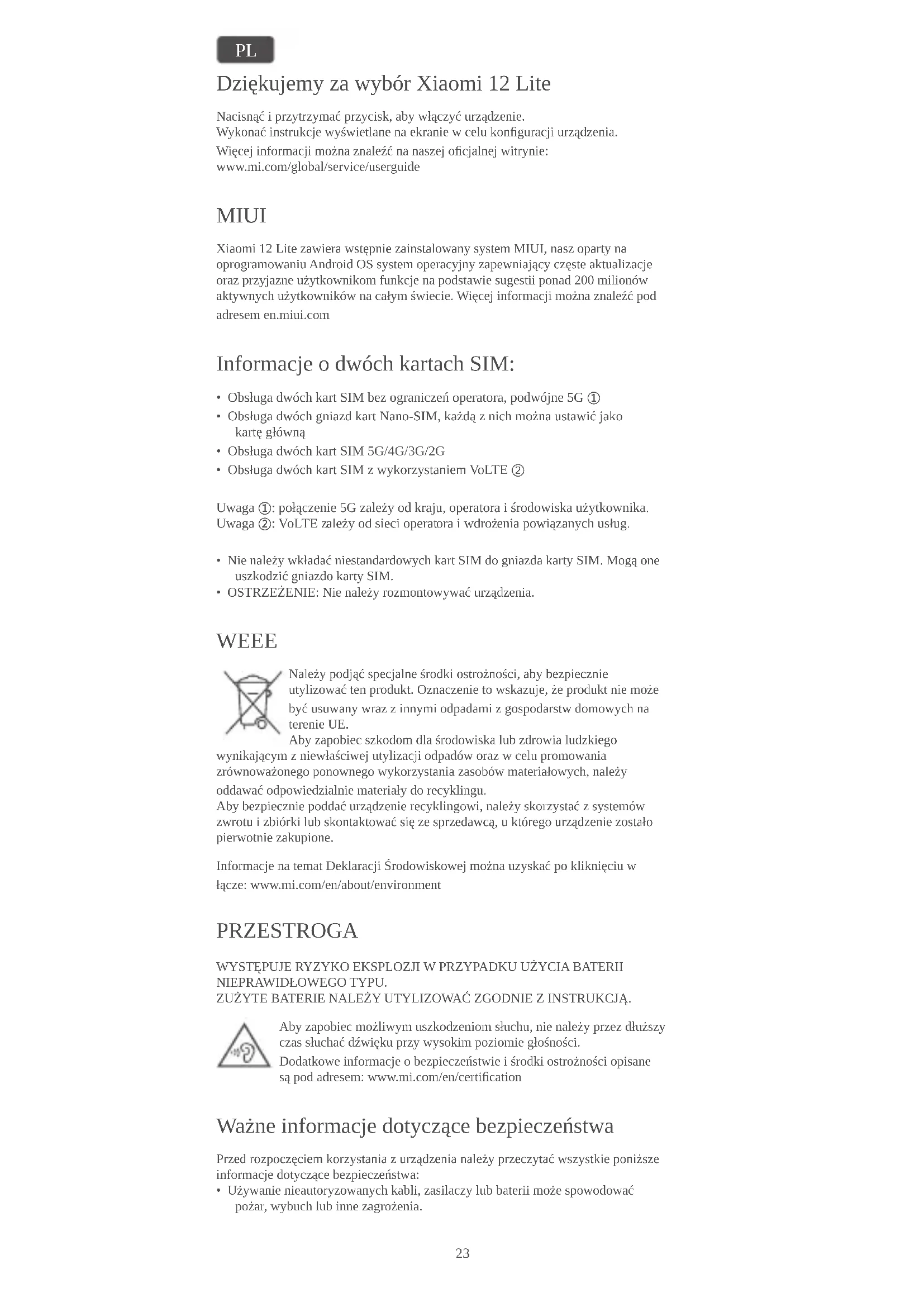 INSTRUKCJA OBSŁUGI 12 Lite Xiaomi