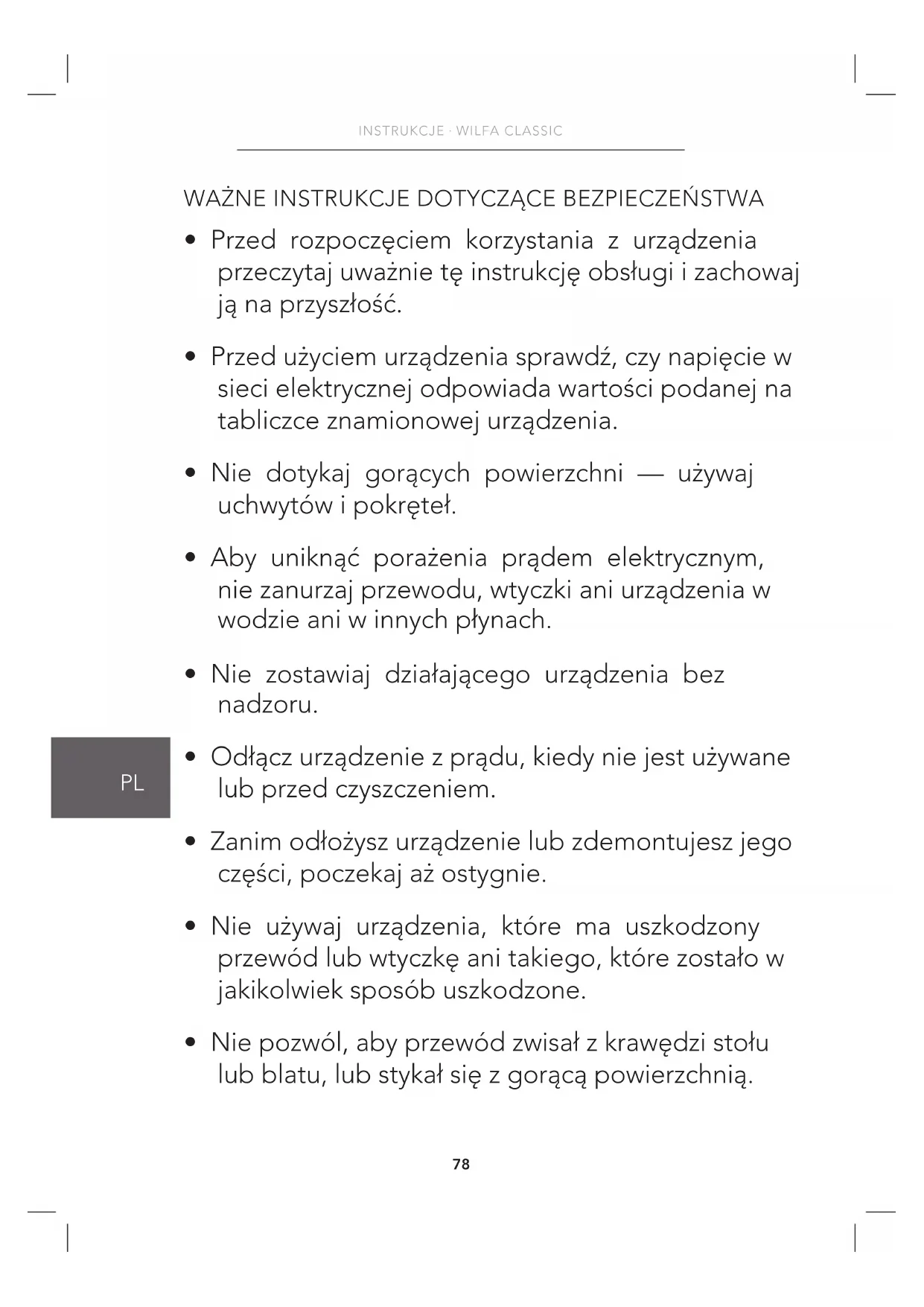 - Nie pozwól, aby przewód zwisał z krawędzi stołu lub blatu, lub stykał się z gorącą powierzchnią.79