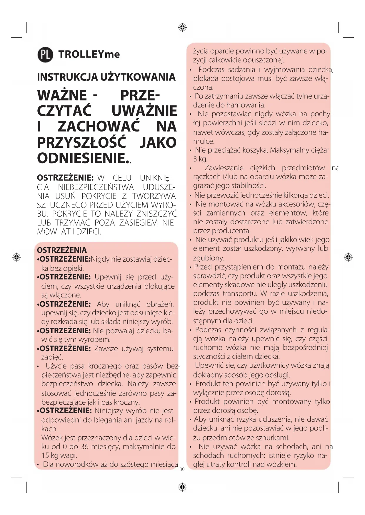 - OSTRZEŻENIE: Niniejszy wyrób nie jest odpowiedni do biegania ani jazdy na rol- kach. Wózek jest przeznaczony dla dzieci w wie- ku od 0 do 36 miesięcy, maksymalnie do 15 kg wagi.