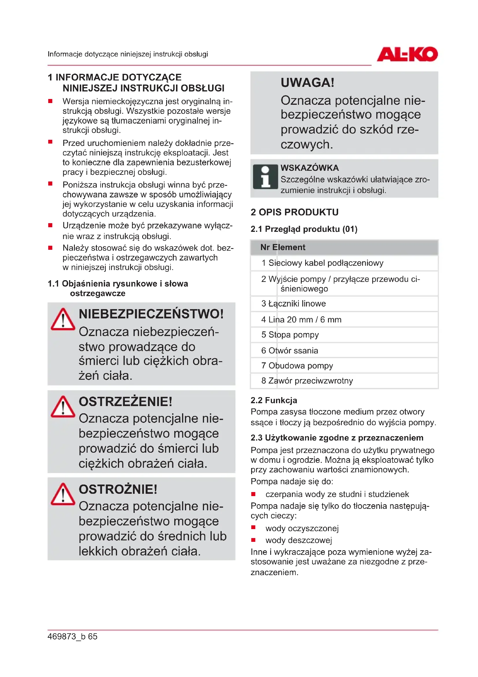1.1 Objasnienia rysunkowe i slowa ostrzegawcze 65