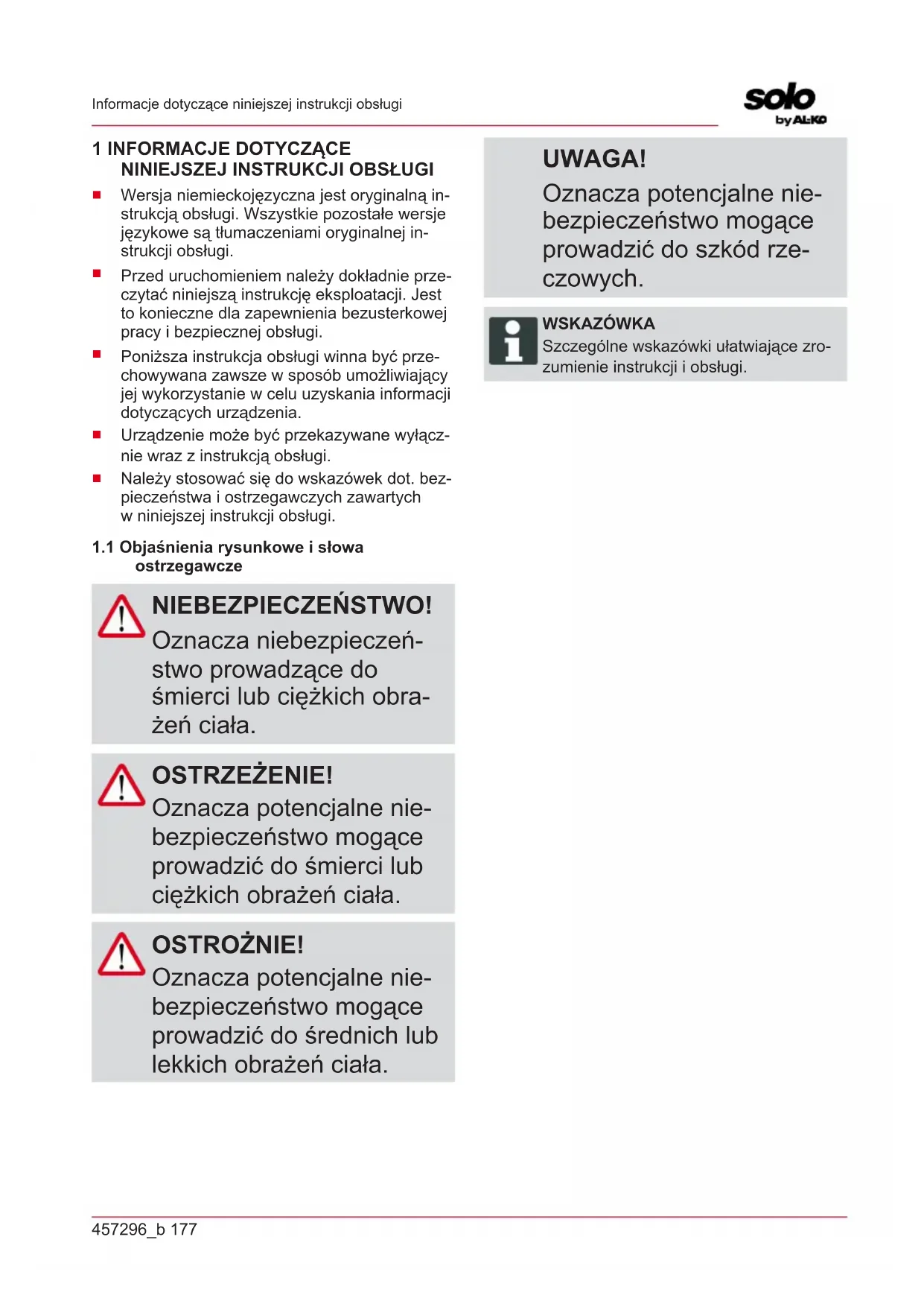 Wersja niemieckojęzyczna jest oryginalną in- strukcją obsługi. Wszystkie pozostałe wersje językowe są tłumaczeniami oryginalnej in- strukcji obsługi.