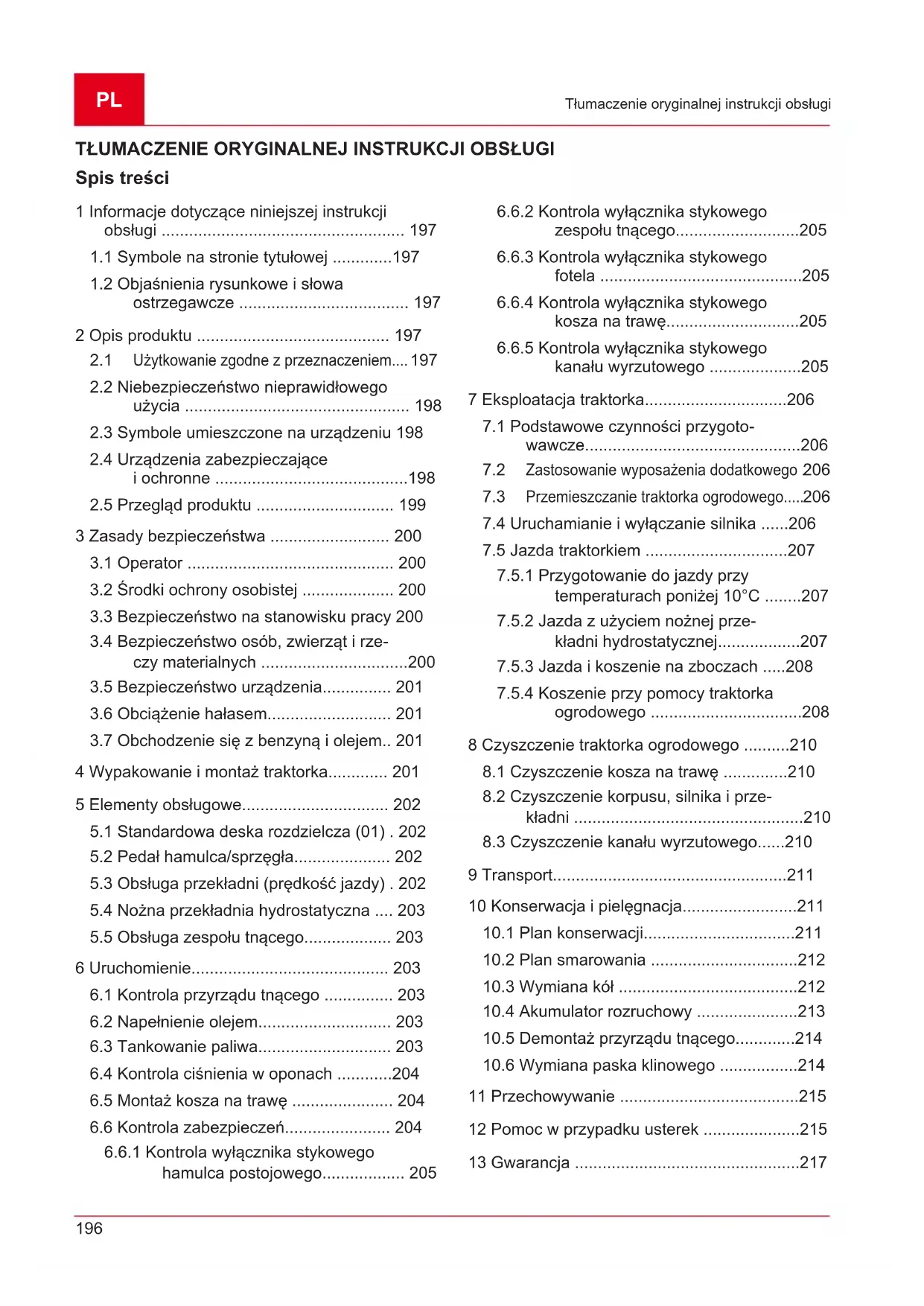 kanału wyrzutowego ....................205 7 Eksploatacja traktorka...............................206