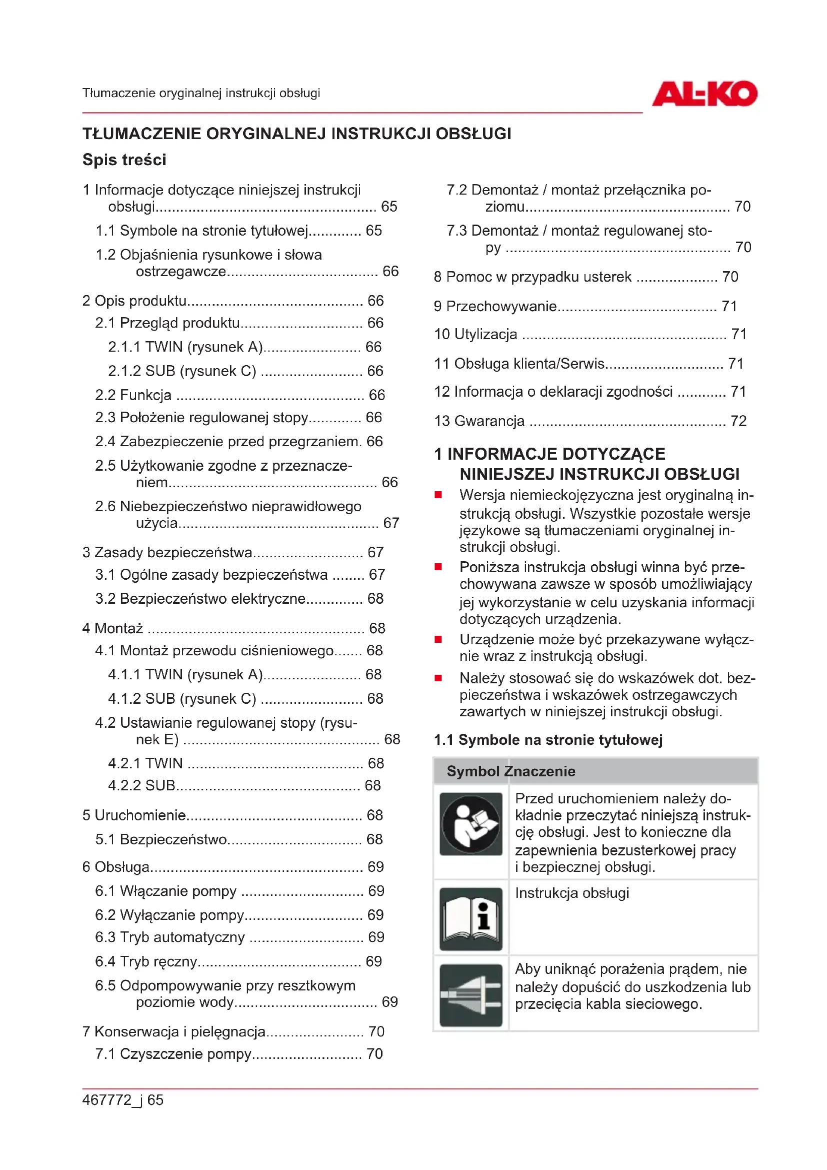 Spis treści 1 Informacje dotyczące niniejszej instrukcji obsługi...................................................... 65