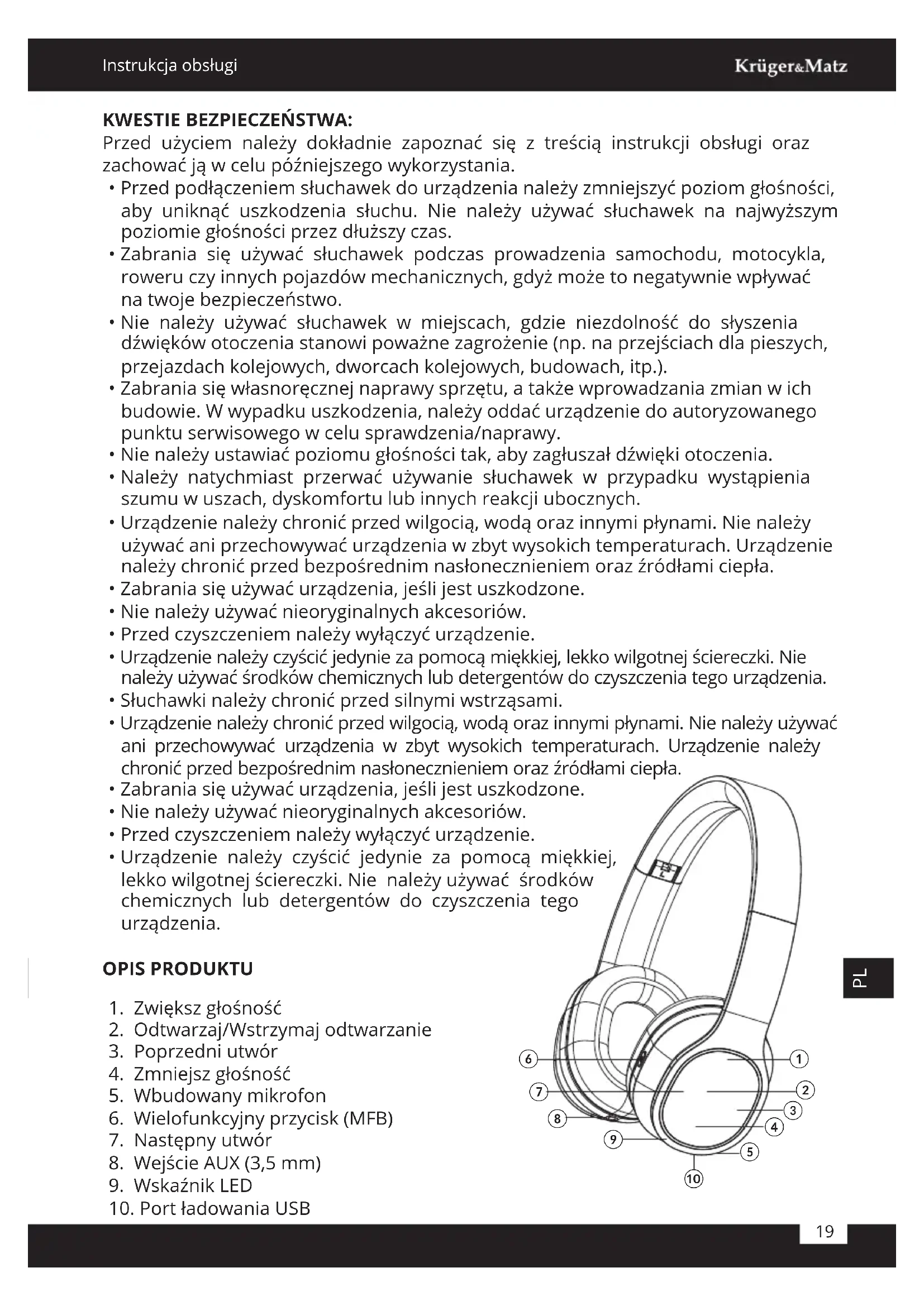 - Zabrania się używać słuchawek podczas prowadzenia samochodu, motocykla, roweru czy innych pojazdów mechanicznych, gdyż może to negatywnie wpływać na twoje bezpieczeństwo.