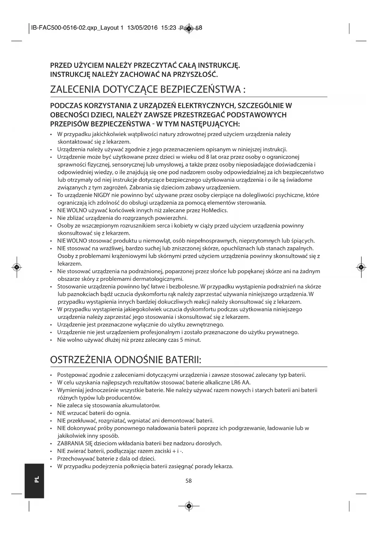 INSTRUKCJA OBSŁUGI FAC500RGAEU HOMEDICS