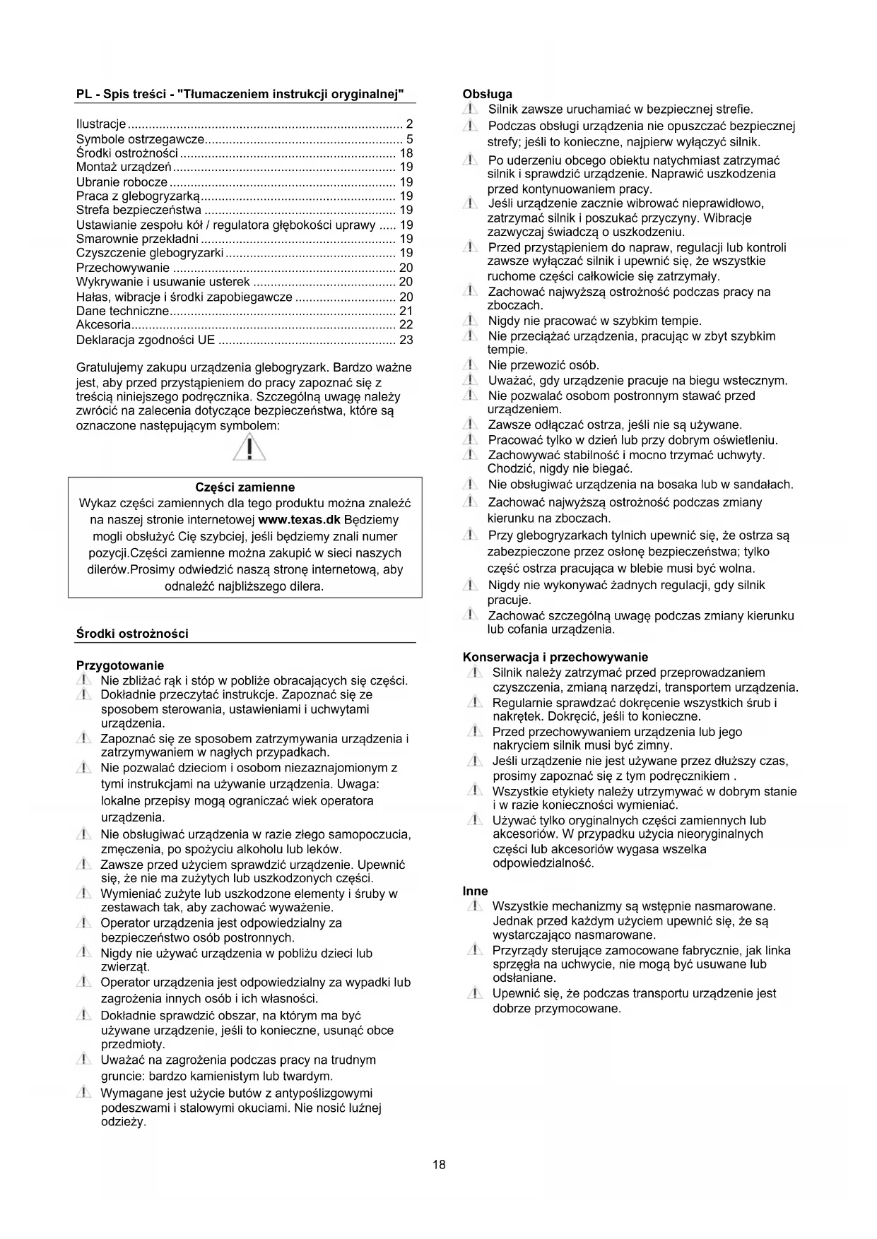 ElTex 1800 - Glebogryzarka Texas - Bezpłatna instrukcja obsługi
