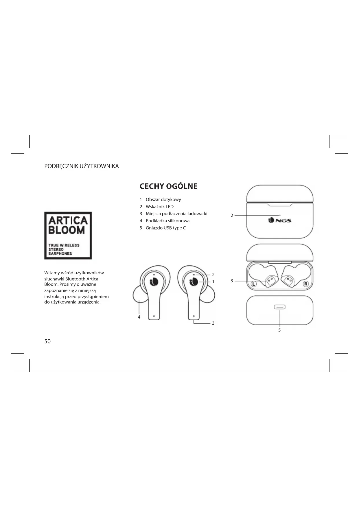 Artica Bloom - Zatyczka do uszu NGS - Bezpłatna instrukcja obsługi