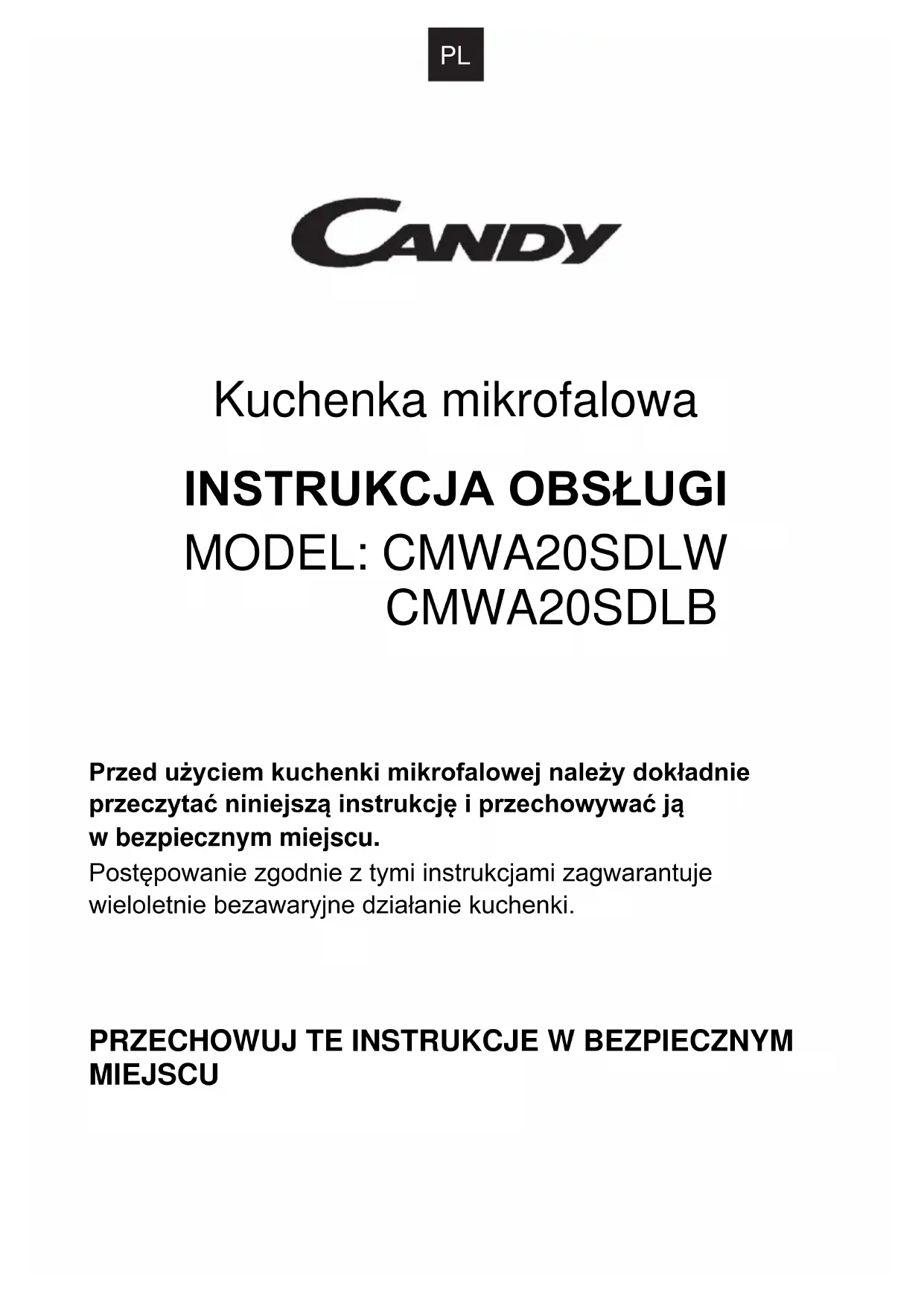CMWA20SDLB Przed użyciem kuchenki mikrofalowej należy dokładnie przeczytać niniejszą instrukcję i przechowywać ją w bezpiecznym miejscu. Postępowanie zgodnie z tymi instrukcjami zagwarantuje wieloletnie bezawaryjne działanie kuchenki.