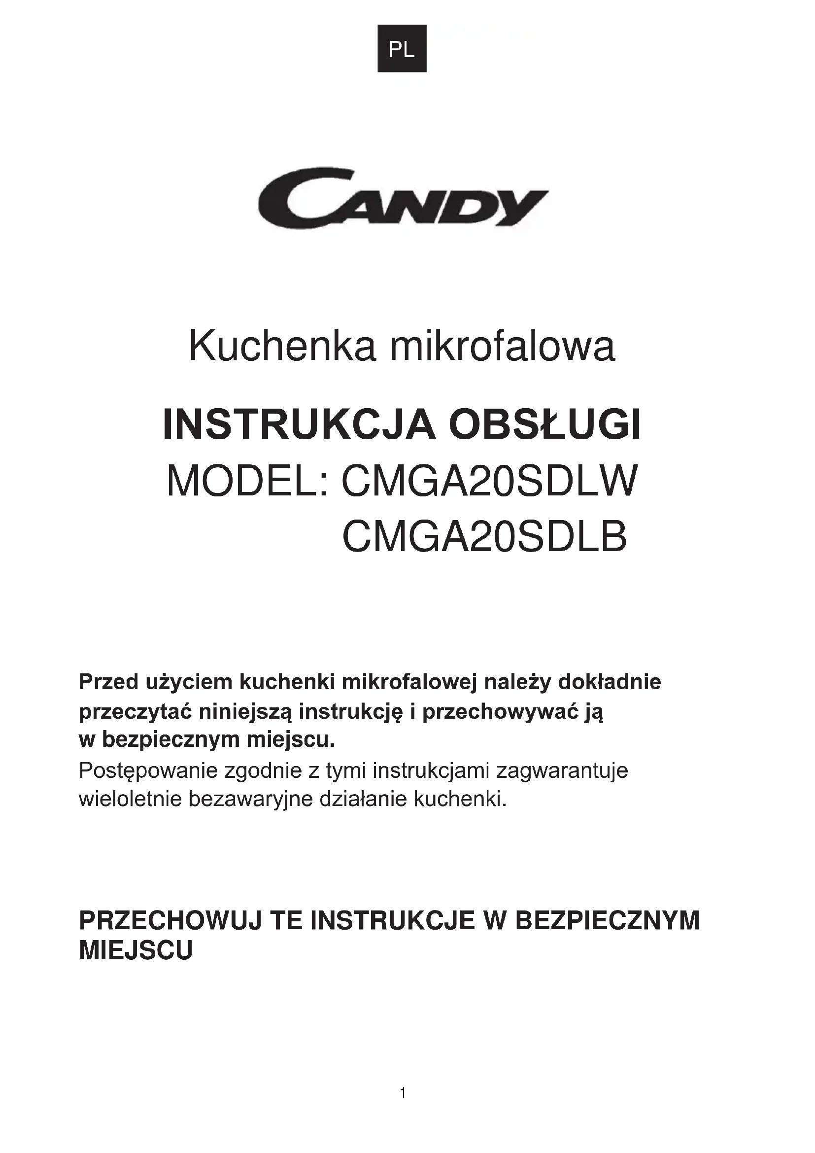 CMGA20SDLB Przed użyciem kuchenki mikrofalowej należy dokładnie przeczytać niniejszą instrukcję i przechowywać ją w bezpiecznym miejscu. Postępowanie zgodnie z tymi instrukcjami zagwarantuje wieloletnie bezawaryjne działanie kuchenki.