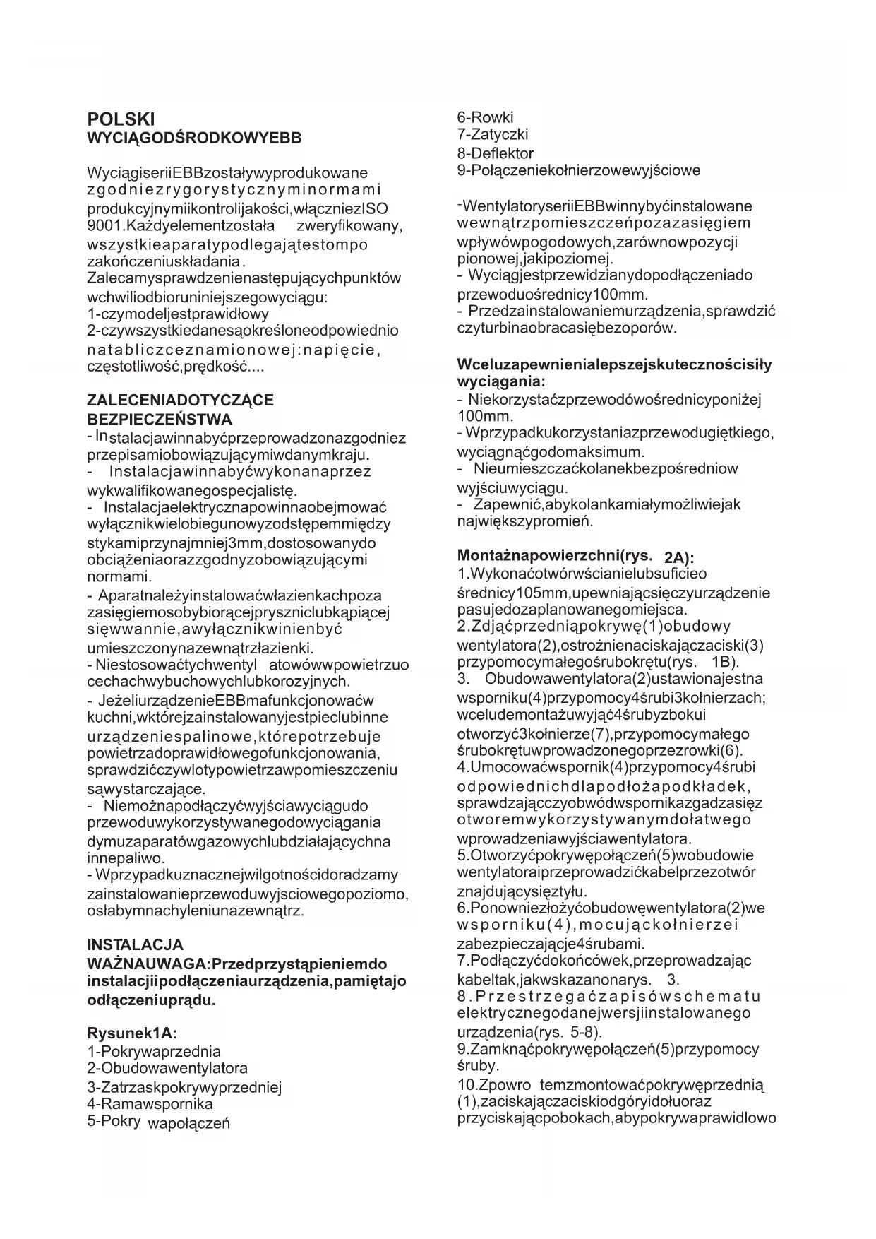 ELEKTRYCZNEGO (rys. 5-8 Urządzenie posiada przełącznik zwłoczny podczas włączania opóźniający o 50 sekund, co oznacza, że przez pierwsze 50 sekund po włączeniu wyciąg nie funkcjonuje. 2B): EBB wersja „S” EBB wersja „T” UWAGA: EBB wersja „HT”