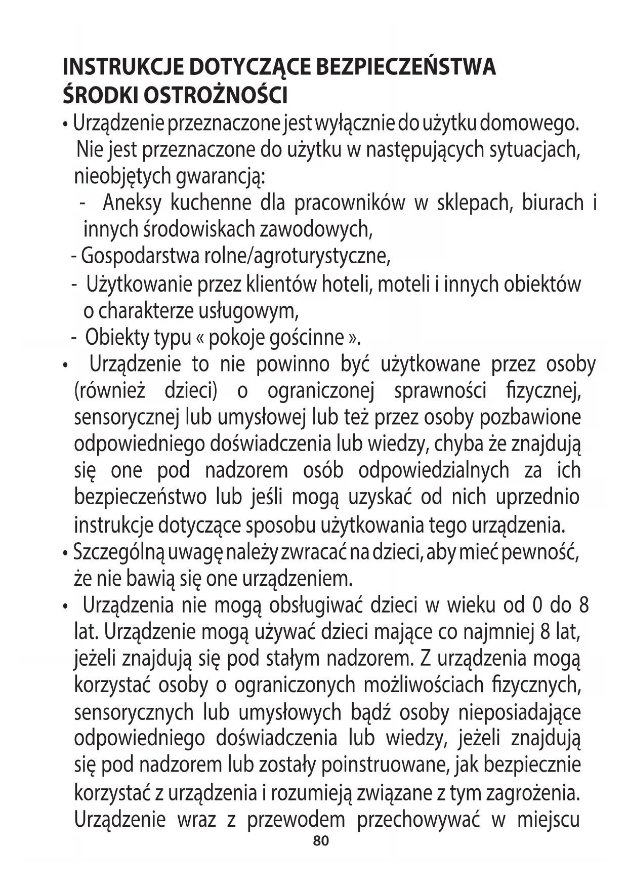 - Urządzenia nie mogą obsługiwać dzieci w wieku od 0 do 8 lat. Urządzenie mogą używać dzieci mające co najmniej 8 lat, jeżeli znajdują się pod stałym nadzorem. Z urządzenia mogą korzystać osoby o ograniczonych możliwościach zycznych, sensorycznych lub umysłowych bądź osoby nieposiadające odpowiedniego doświadczenia lub wiedzy, jeżeli znajdują się pod nadzorem lub zostały poinstruowane, jak bezpiecznie korzystać z urządzenia i rozumieją związane z tym zagrożenia. Urządzenie wraz z przewodem przechowywać w miejscu81