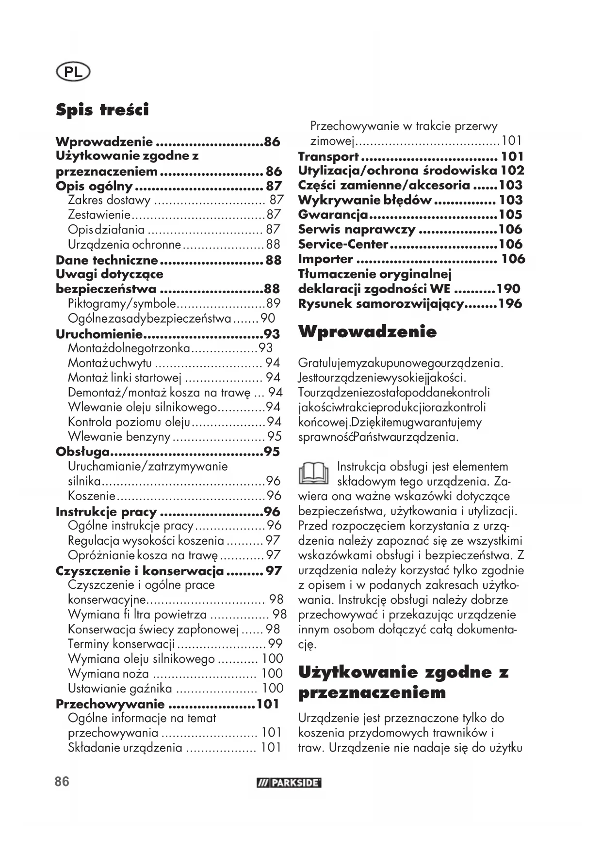 Urzqdzenie jest przyznaczone tylko do koszenia przydomowych trawników i traw. Urzqdzenie nie nadaje są do uzytku
