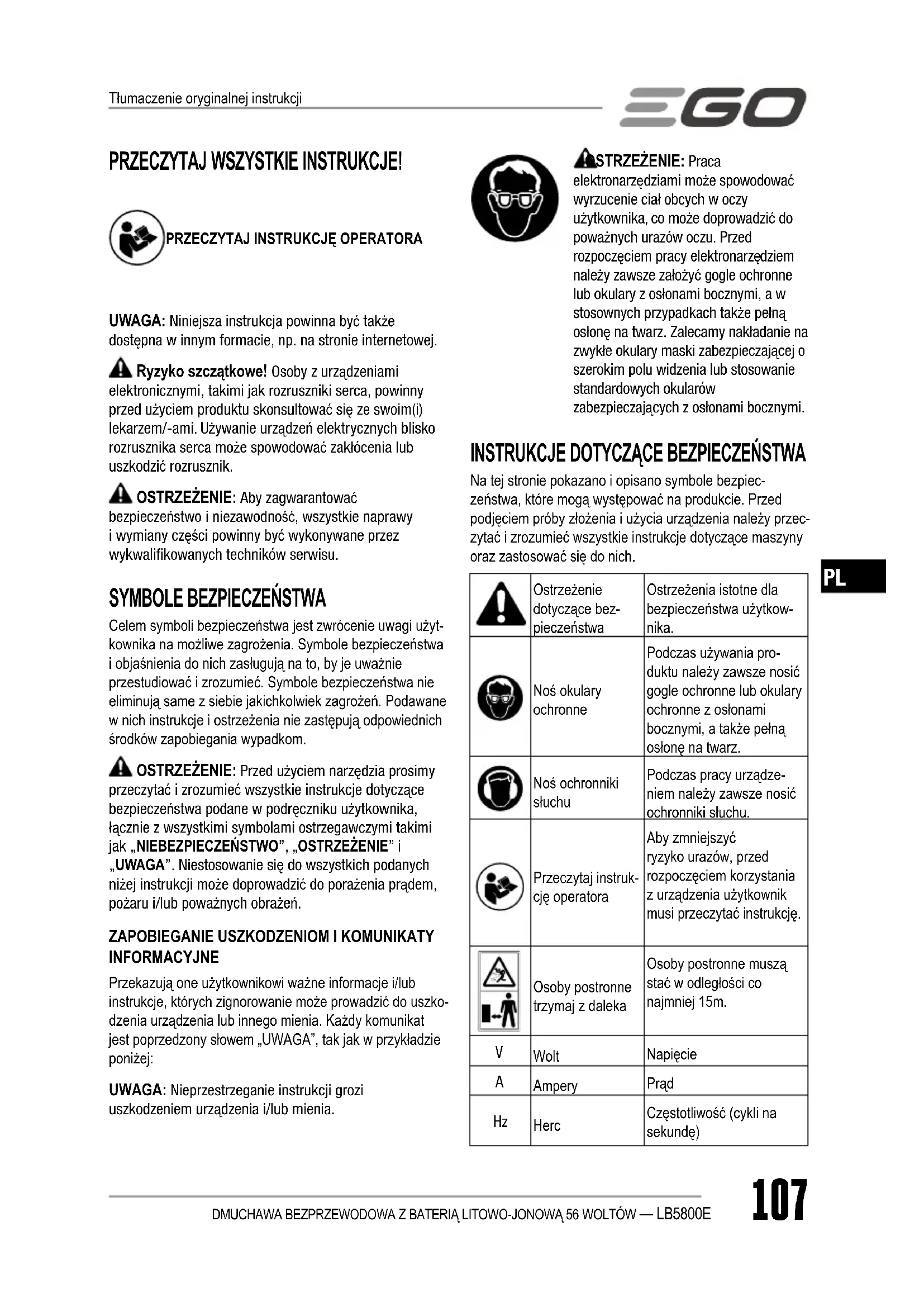 LB5804E - Dmuchawa EGO - Bezpłatna instrukcja obsługi