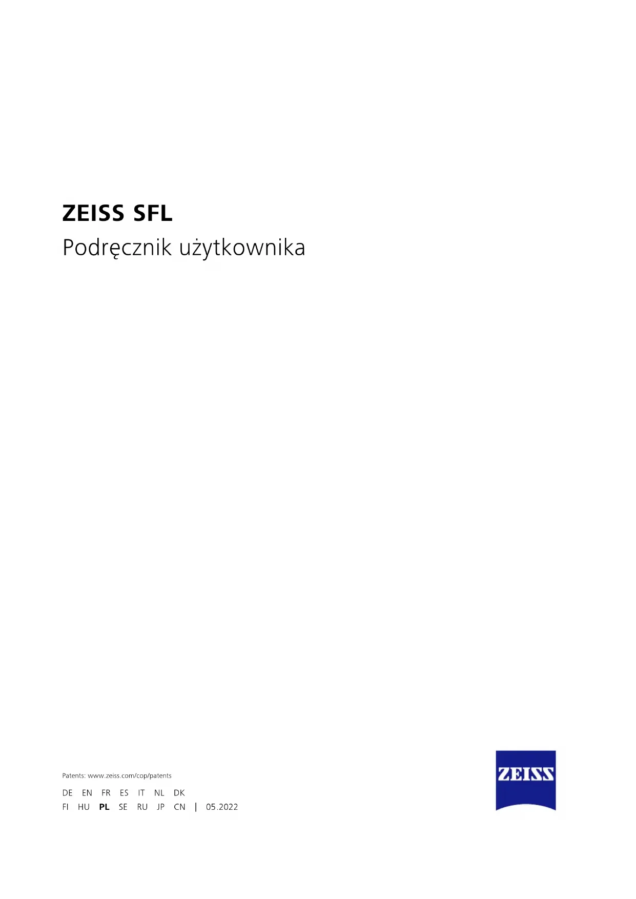 (°F) -20 / +55 (-4 / +131) -20 / +55 (-4 / +131) Długość mm (in) 144 (5,7) 144 (5,7) Szerokość przy rozstawie źrenic 65 mm mm (in) 114 (4,5) 114 (4,5) Masa g(oz) 640 (22,6) 640 (22,6) Zastrzegamy sobie prawo do wprowadzania zmian wprodukcie izakresie dostawy, które wynikają zrozwoju technologicznego.ZEISS SFL Bruksanvisning DE EN FR ES IT NL DK Patents: www.zeiss.com/cop/patents FI HU PL SE RU JP CN | 05.202242 | 57 DELARNAS NAMN
