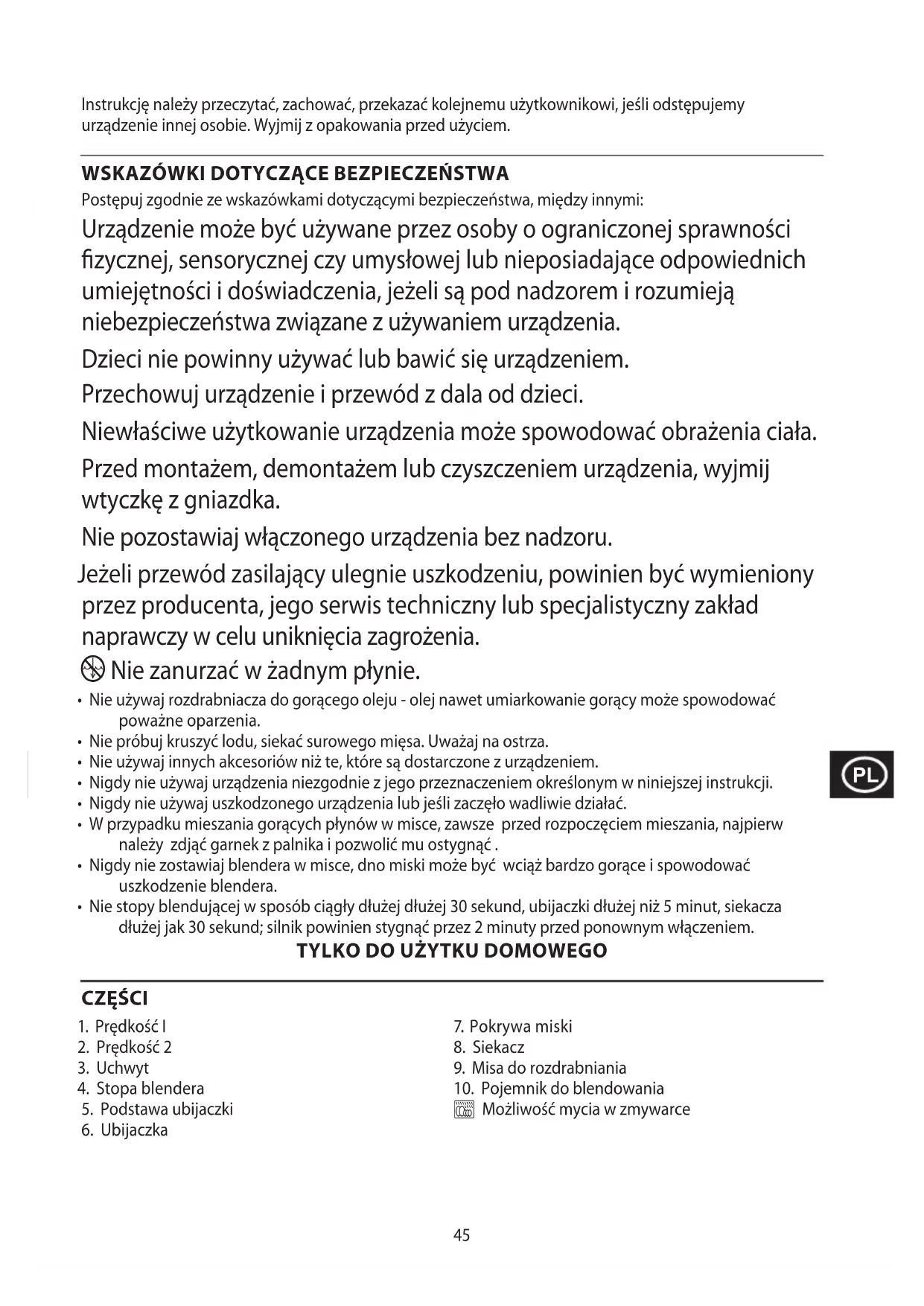 - Przy używaniu w gorącym płynie, nie dopuszczać do działania pod kątem w stosunku do powierzchni - płyn może wytrysnąć poza miskę/garnek/pojemnik.