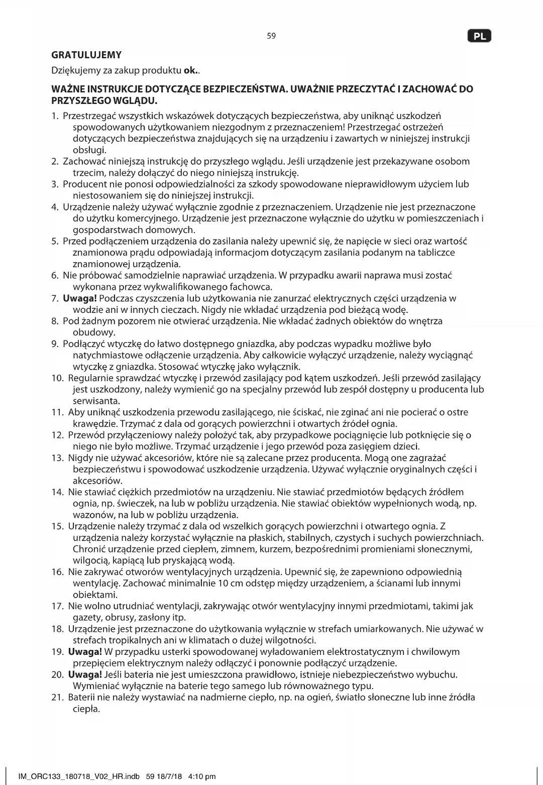 GRATULUJEMY Dziękujemy za zakup produktu ok.. WAŻNE INSTRUKCJE DOTYCZĄCE BEZPIECZEŃSTWA. UWAŻNIE PRZECZYTAĆ I ZACHOWAĆ DO PRZYSZŁEGO WGLĄDU.