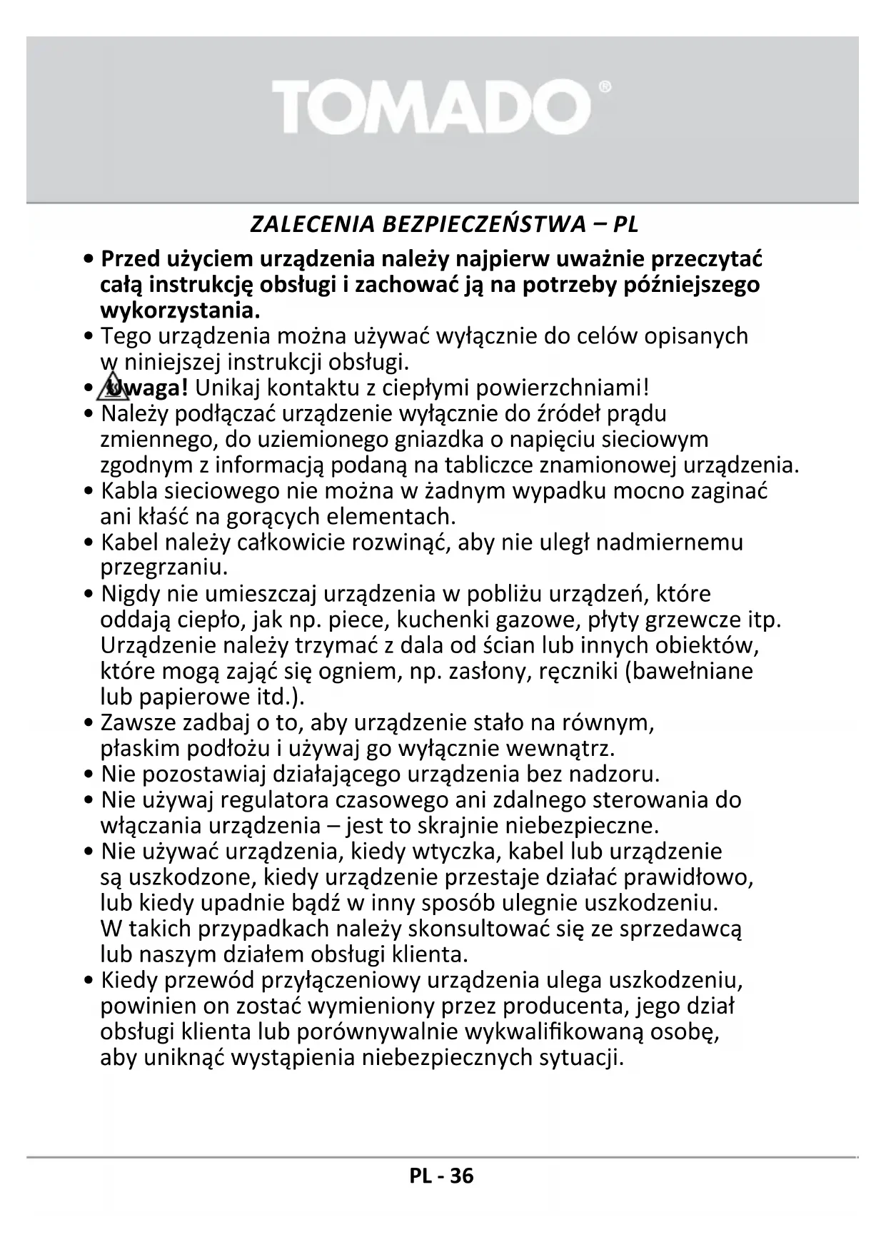 ZALECENIA BEZPIECZEŃSTWA – PL