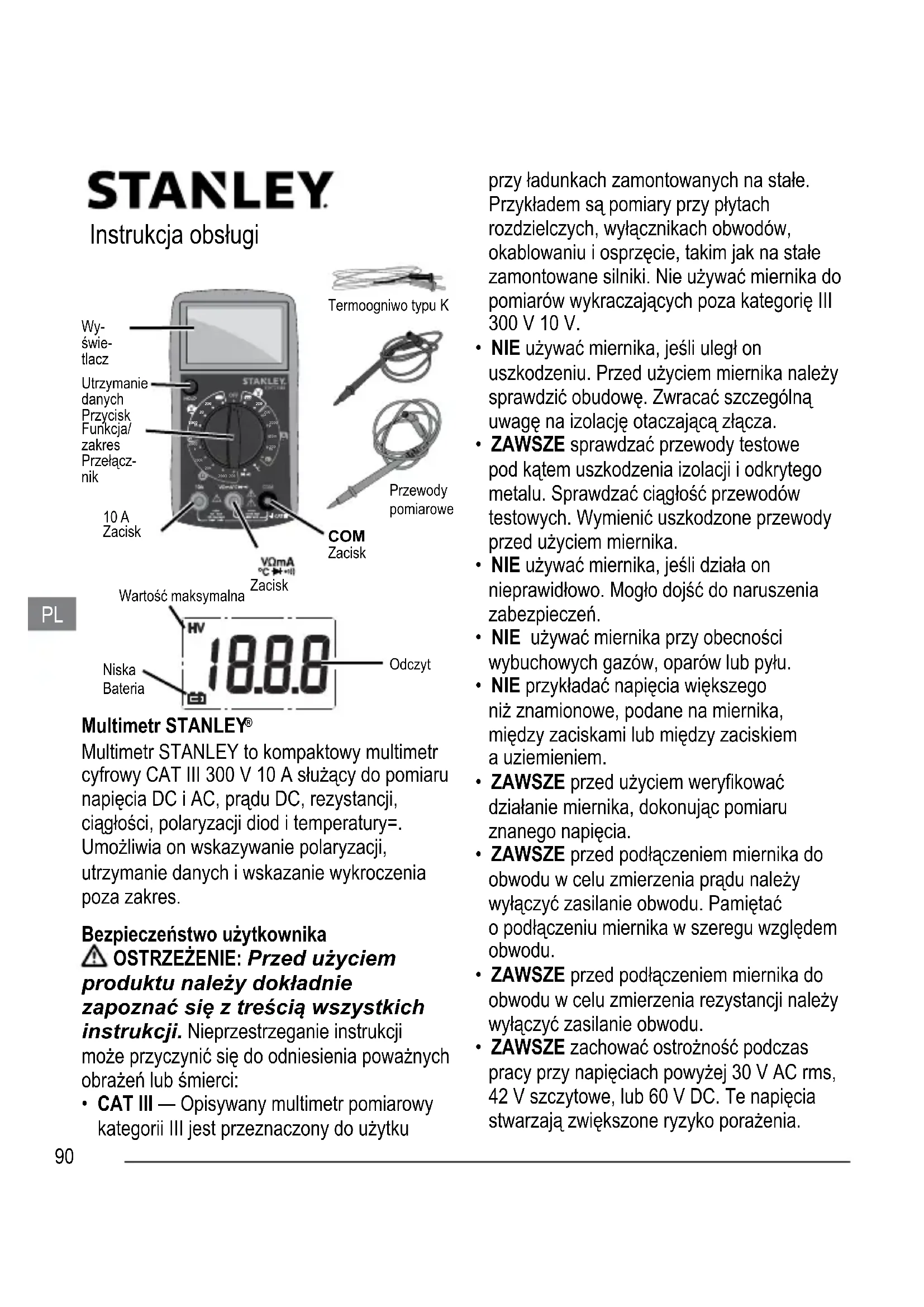 STHT077364 - Multimetr STANLEY - Bezpłatna instrukcja obsługi