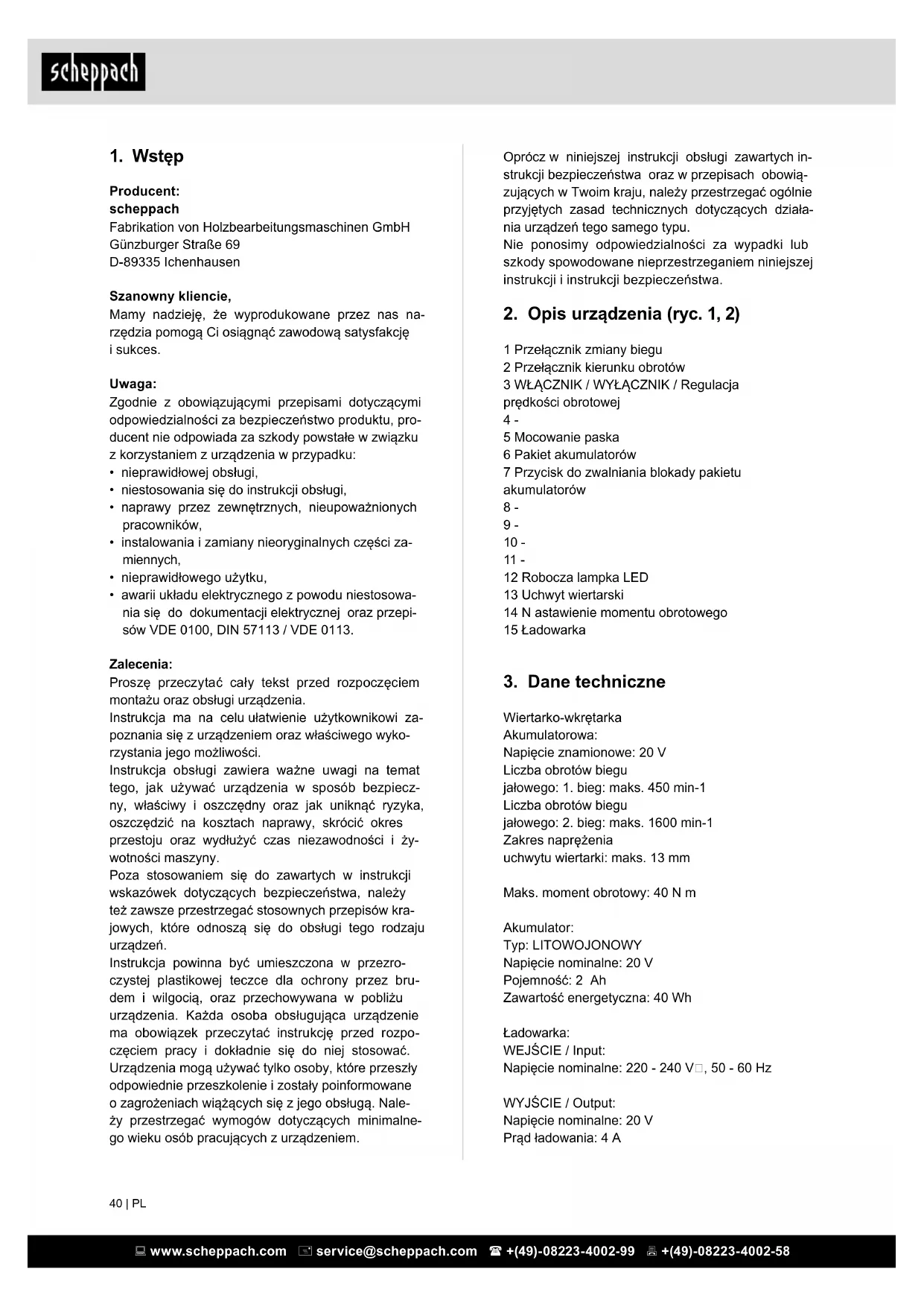 CID4020Li - Wiertarka SCHEPPACH - Bezpłatna instrukcja obsługi