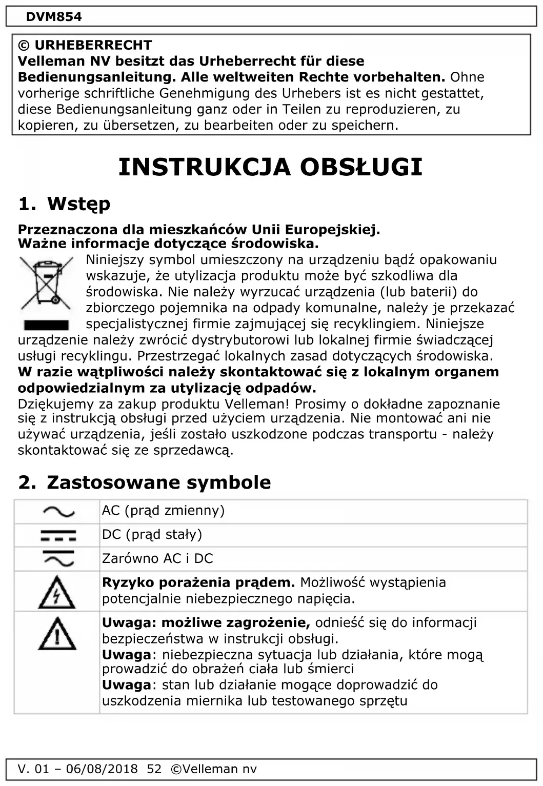 Pobierz instrukcję dla swojego Multimetr w formacie PDF za darmo! Znajdź swoją instrukcję DVM854 - VELLEMAN i weź swoje urządzenie elektroniczne z powrotem w ręce. Na tej stronie opublikowane są wszystkie dokumenty niezbędne do korzystania z urządzenia. DVM854 marki VELLEMAN.
