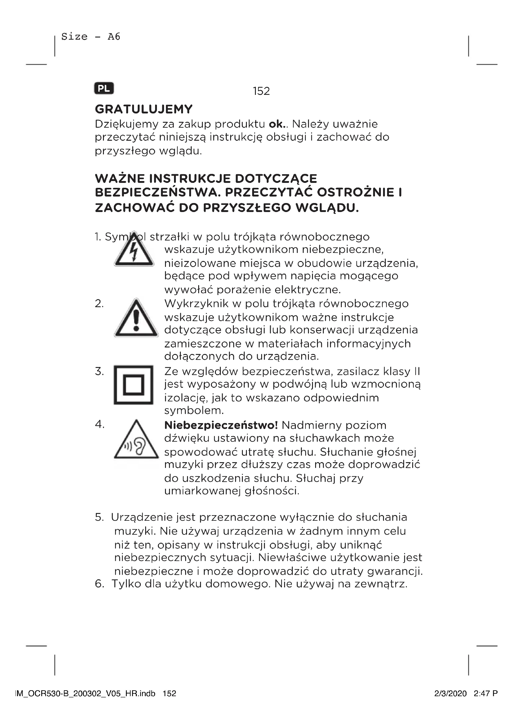 5. Urządzenie jest przeznaczone wyłącznie do słuchania
